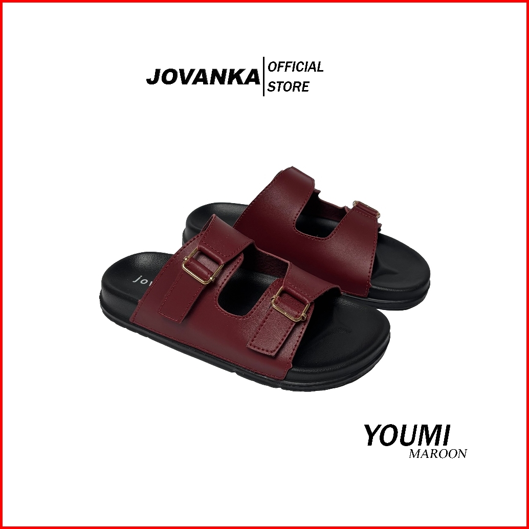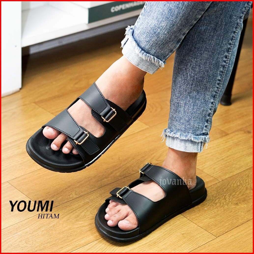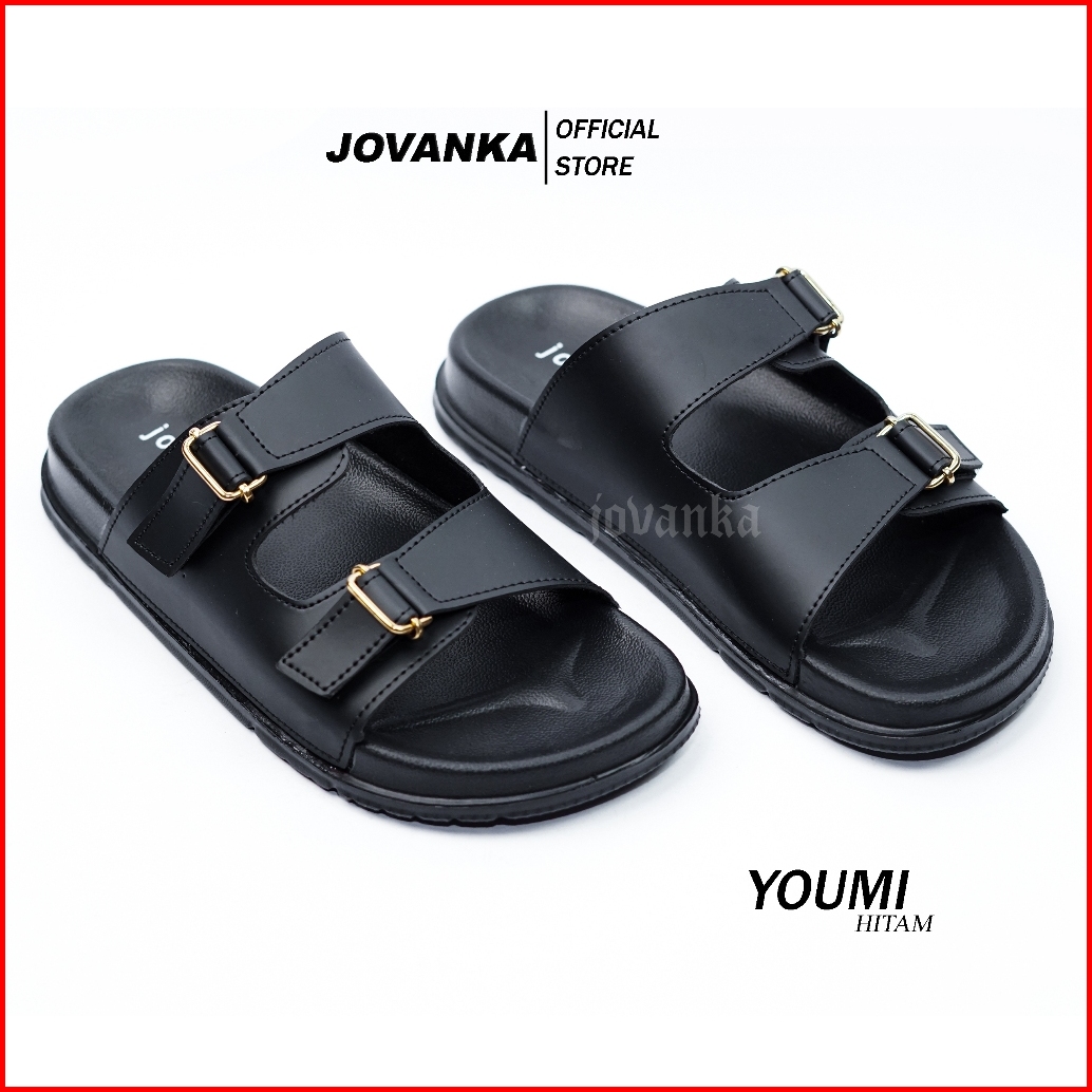 Jovanka Youmi - Sandal Wanita Platform Casual Sendal Selop Wanita Model Kekinian Cantik Elegan - Gesper Perekat Aktif Sa