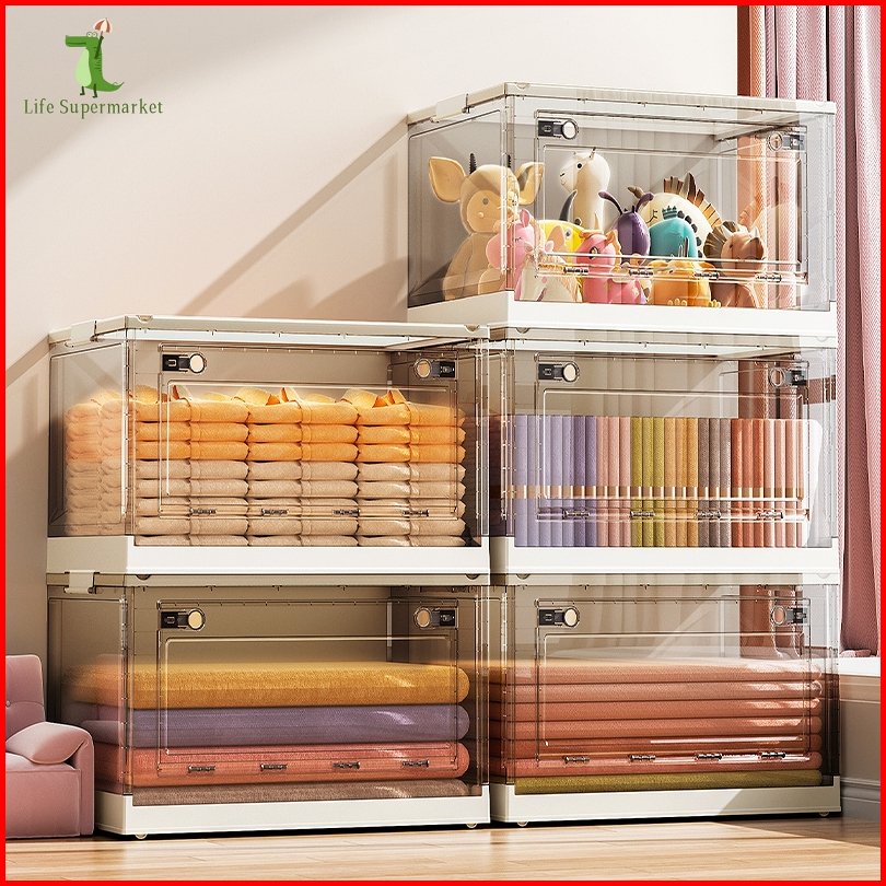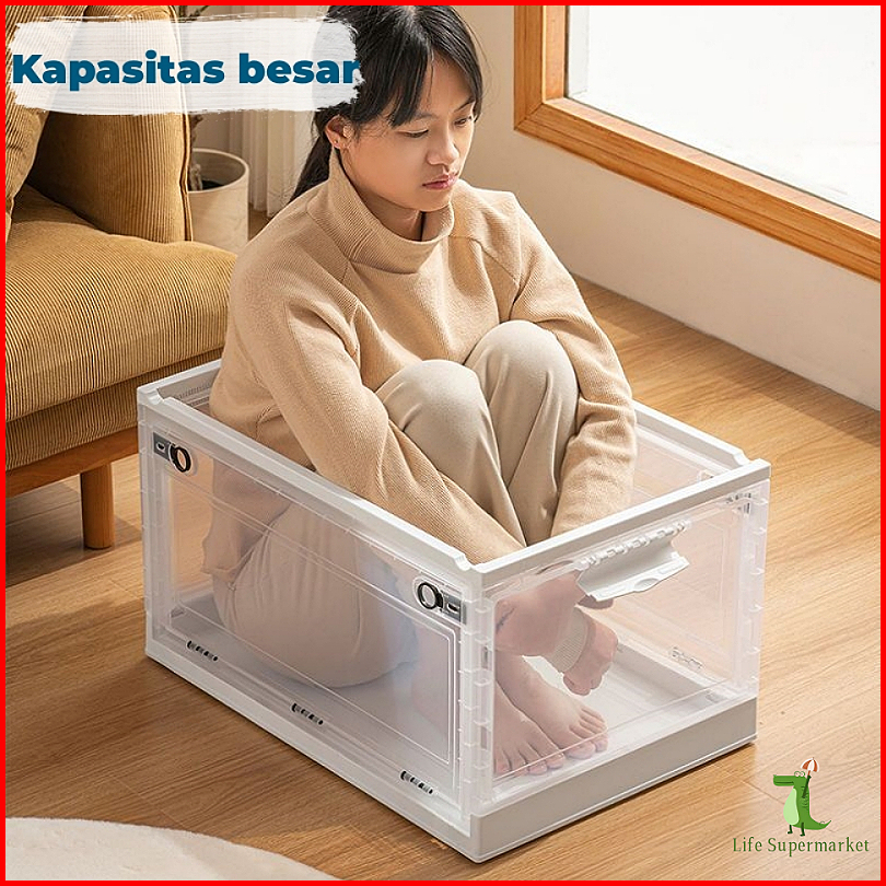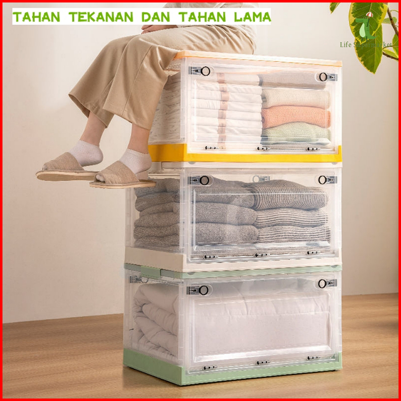 Foldable Storage Box Transparant Large Box Tempat Baju Mainan Kotak Penyimpanan Box Penyimpanan Plastik Transparan Berod