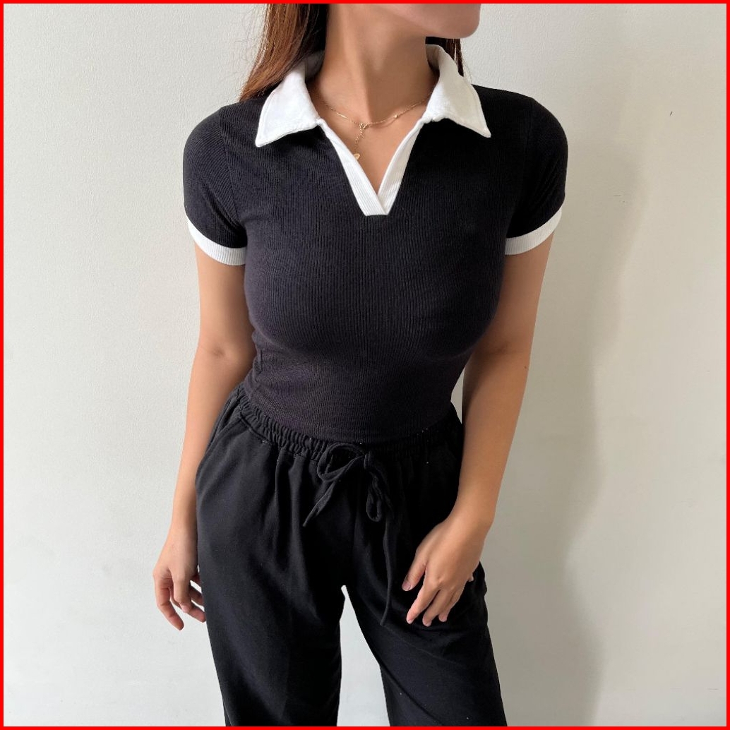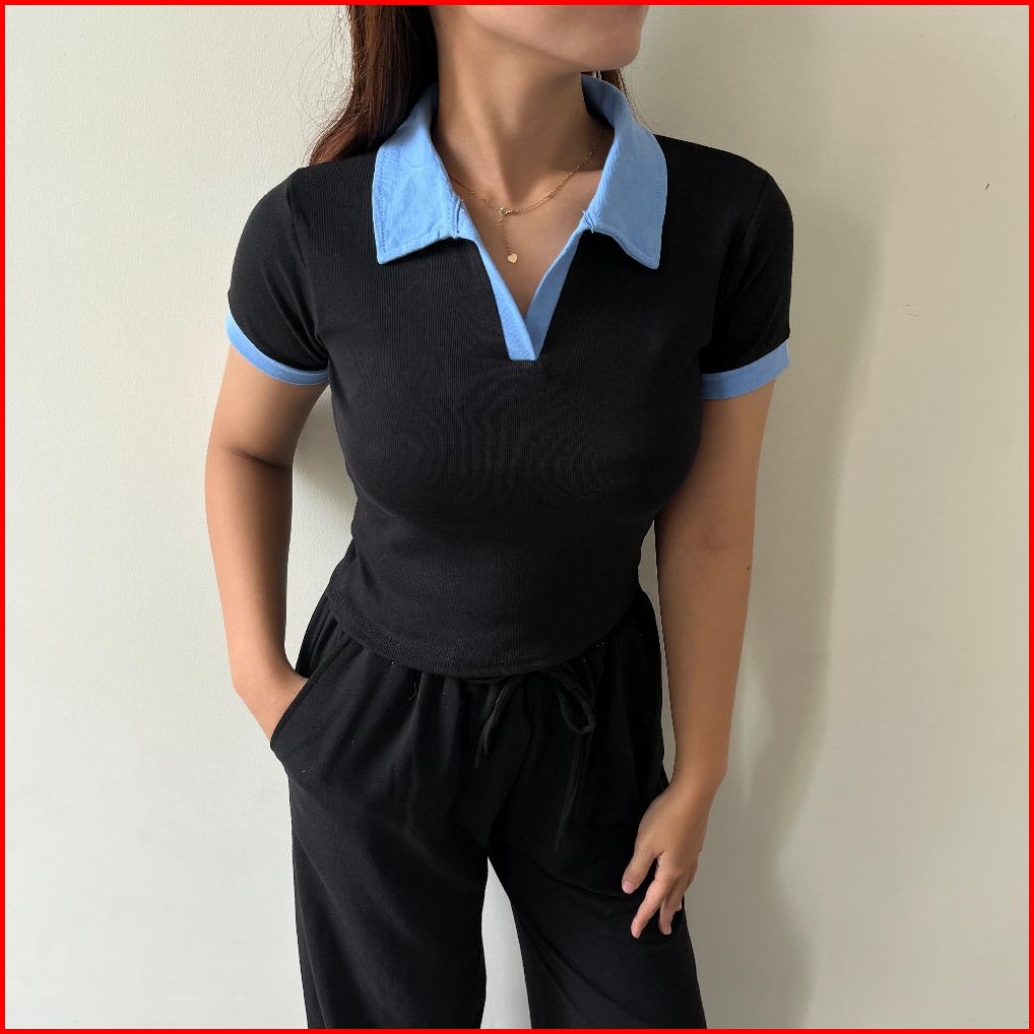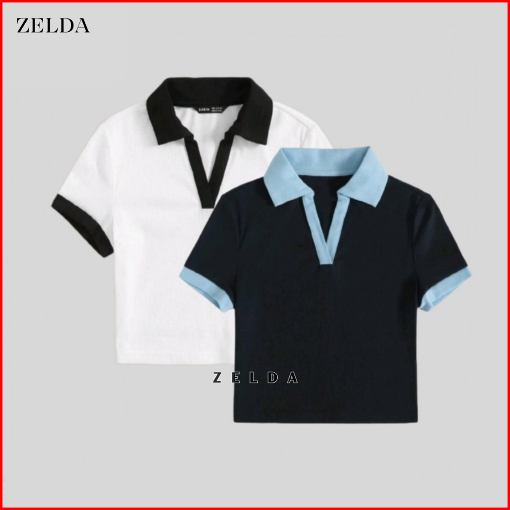 Zelda - Grace Crop Top V Neck Raglan Kaos Crop Kerah V Ct 008 Raglan