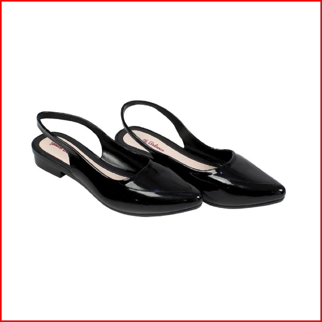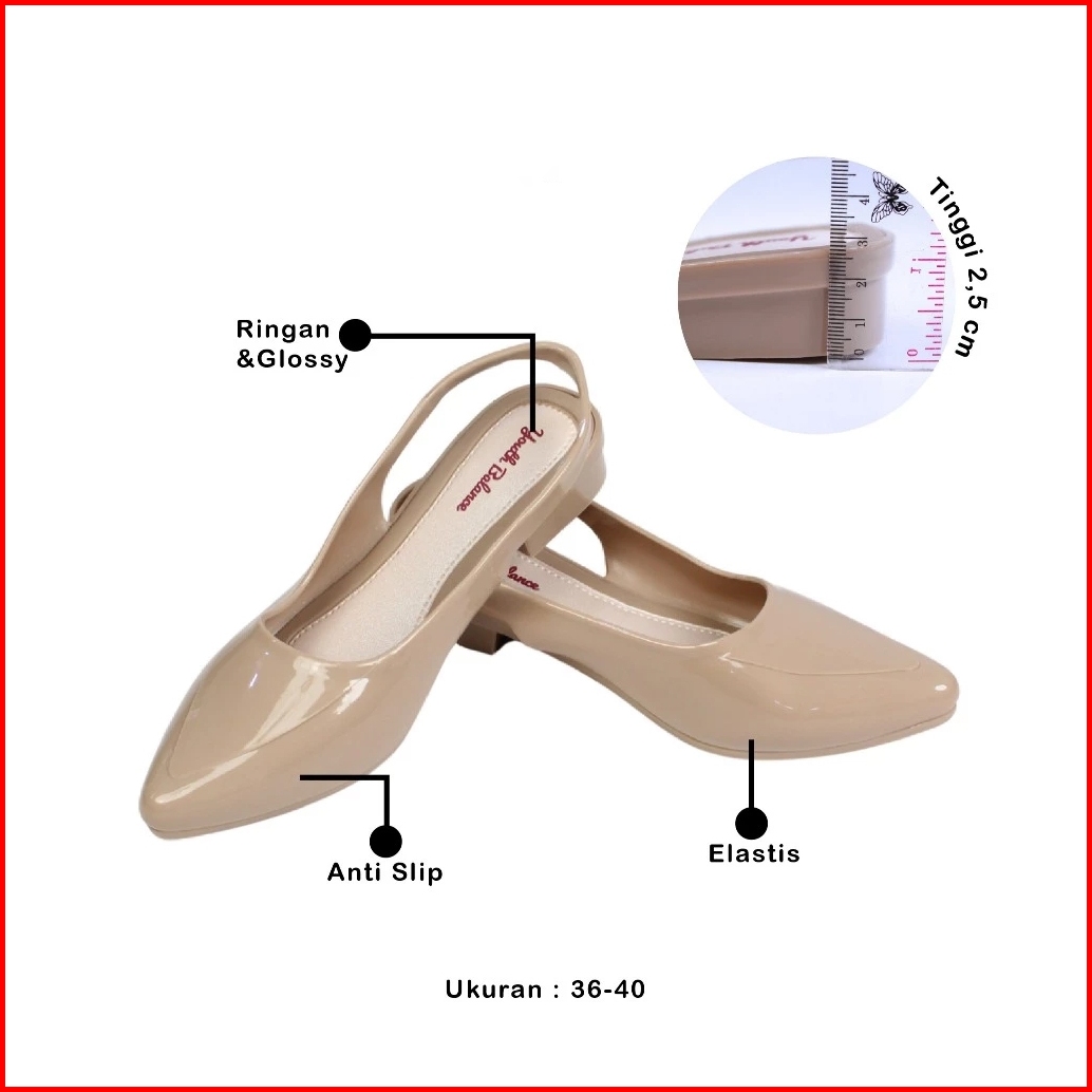 Sandal Jelly Flatshoes Wanita Ringan Tali Belakang Kantoran Harian Cantik Anggun Hak Pendek Ujung Lancip Nyaman Dipakai