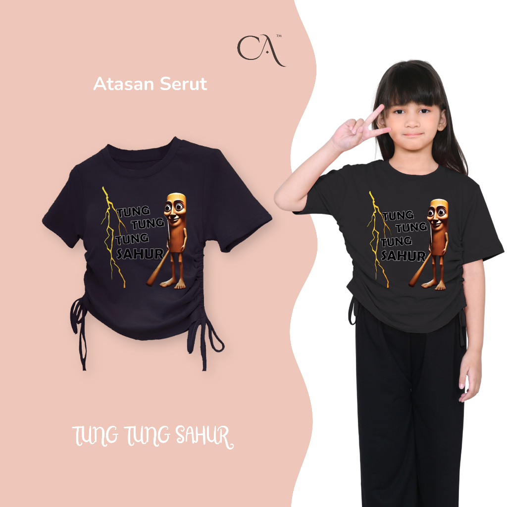 Baju KaosKaos Serut Crop Top Anak Perempuan Kekinian Ballerina Cappucina Anomali | Atasan 1 - 14 Tahun Part 2