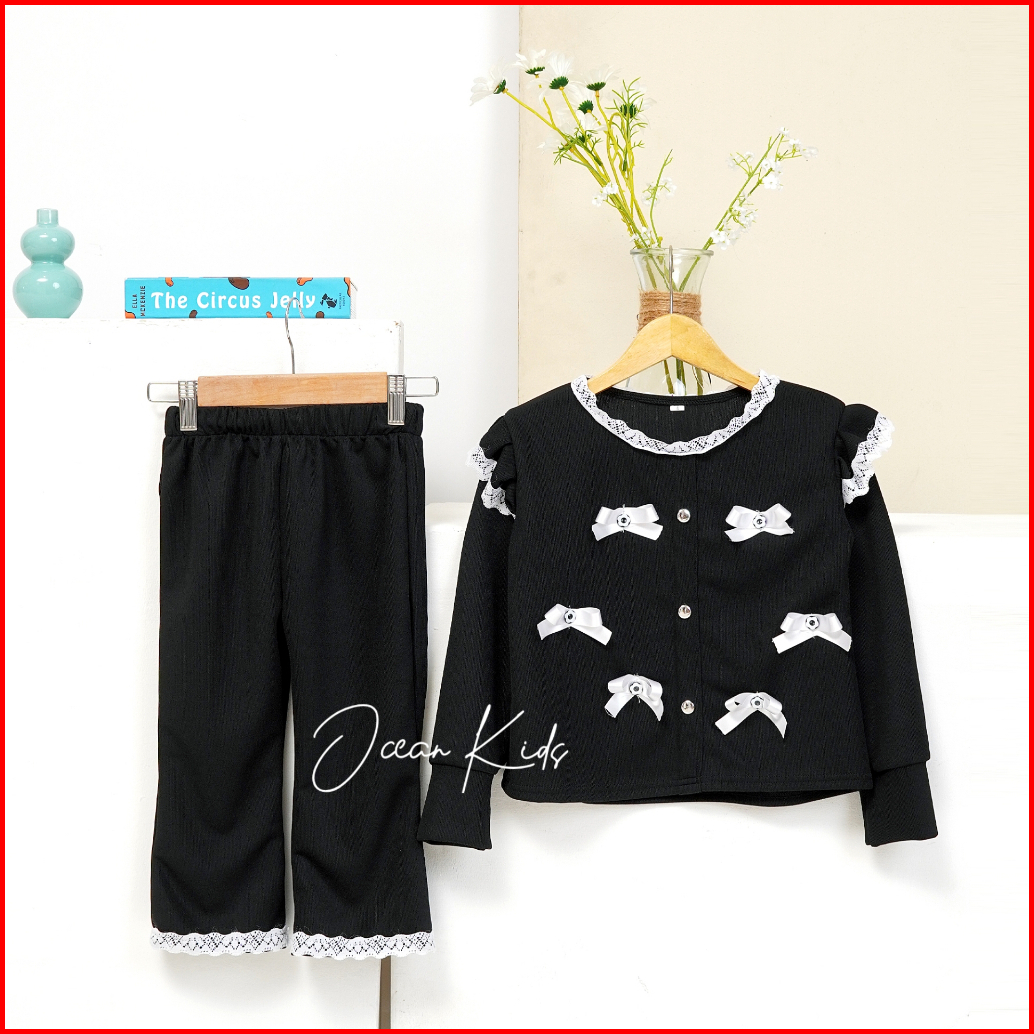 Setelan Cardigan Anak Perempuan Popy Cardigan Anak Perempuan Model Pita Usia 1-11 Tahun