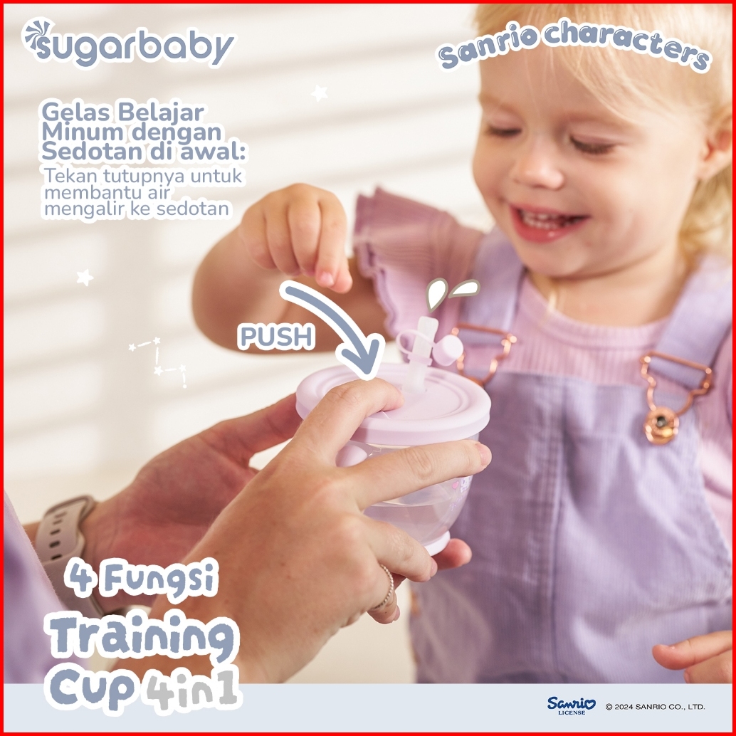 Sugarbaby Training Cup 4in1 Sanrio Collection Gelas Anak Bpa Free Cangkir Bayi Gelas Mpasi Anti Bocor Dan Tumpah Straw T