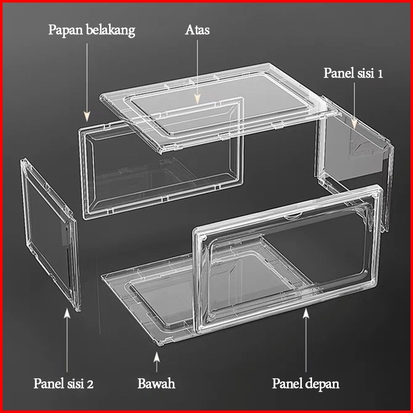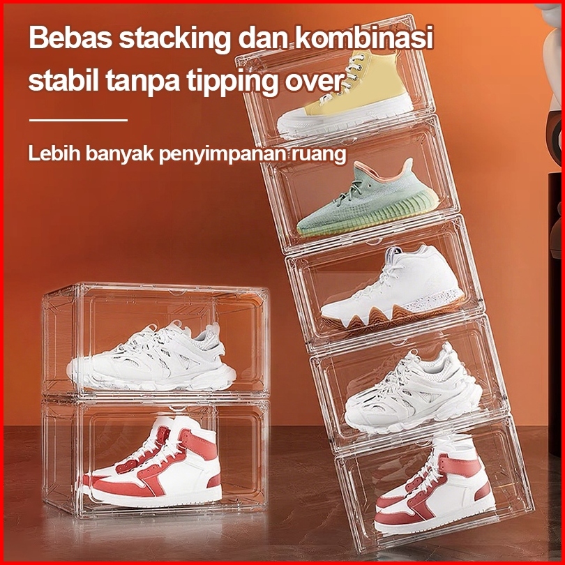 Paket 5 10 Kotak Sepatu Transparan Akrilik Ukuran Besar Tempat Penyimpanan Sepatu Rak Sepatu Premium