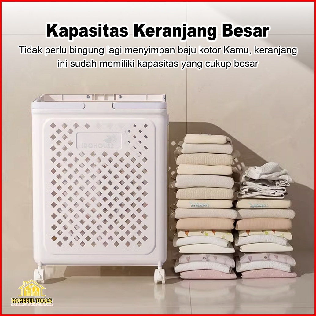 Laundry Basket Keranjang Cucian Baju Kotor Lipat Dengan Roda Serbaguna Lb-d01a D01b