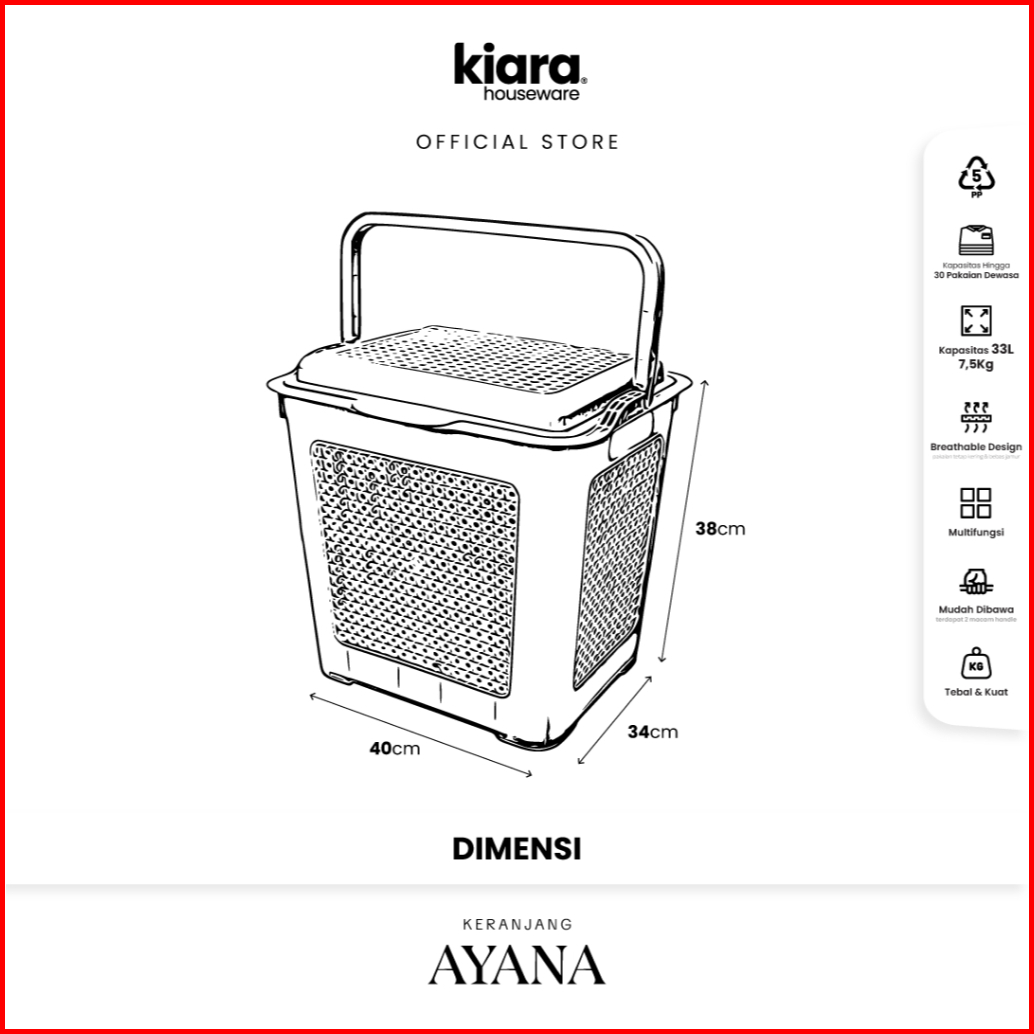 Kiara Keranjang Laundry Ayana Tempat Baju Kotor Dengan Tutup Estetik