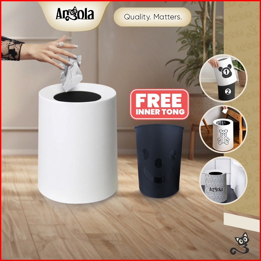 Angola Tempat Sampah Bulat E100 Trash Bin Tong Sampah Plastik Minimalis Ruang Tamu Dapur Toilet