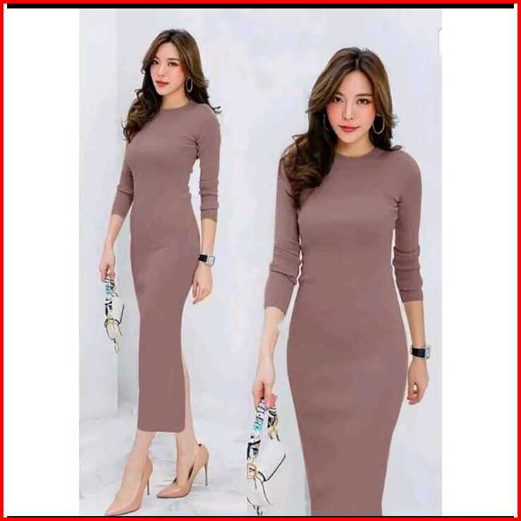 Dress Lexy Rajut Lengan Panjang Polos Casual Korean Style Press Body