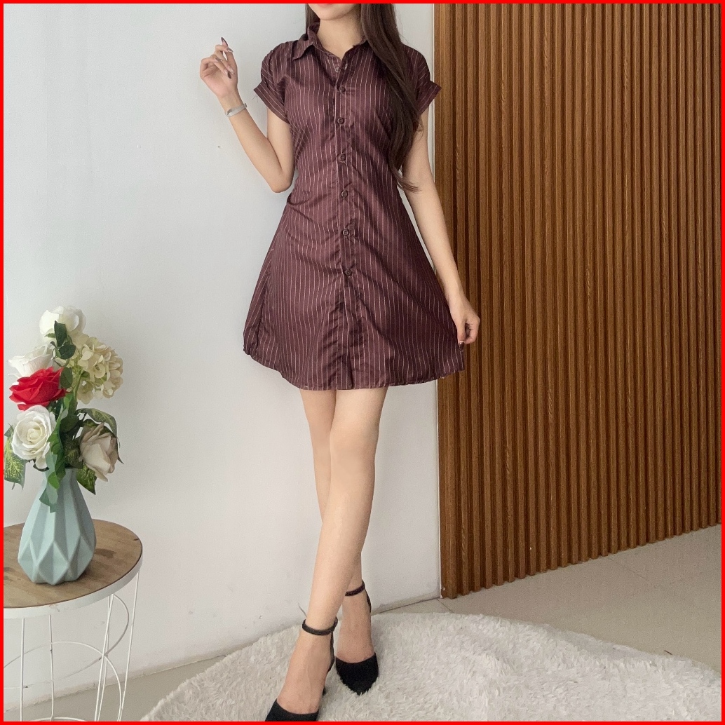 Rf - Maurin Dress Shirt Dress Wanita Dress Dress Kemeja Wanita Kerah -pn