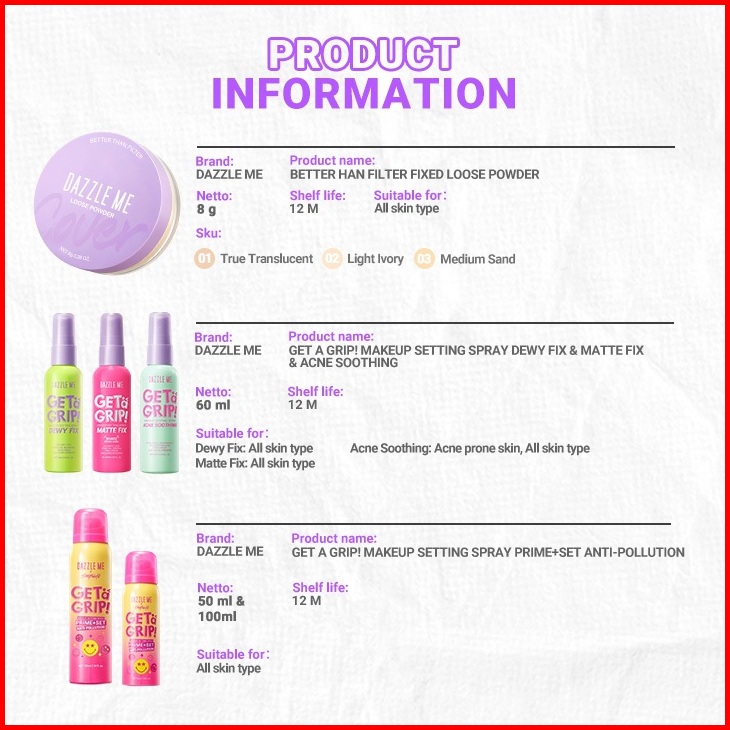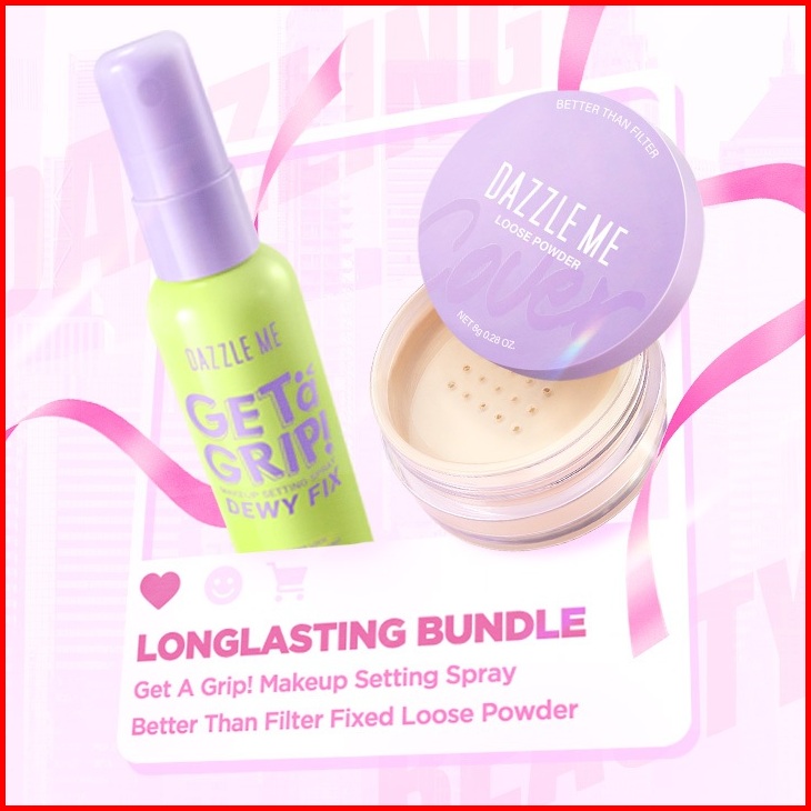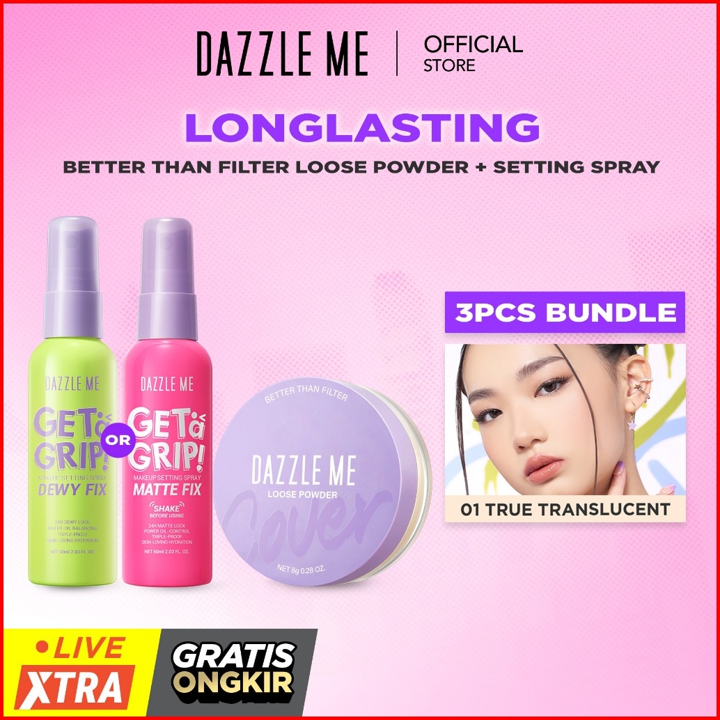 Perfect Pair Bundle Dazzle Me Better Than Filter Longlast Bundle Loose Powder Silky Powder Tahan Air Setting Spray - Set