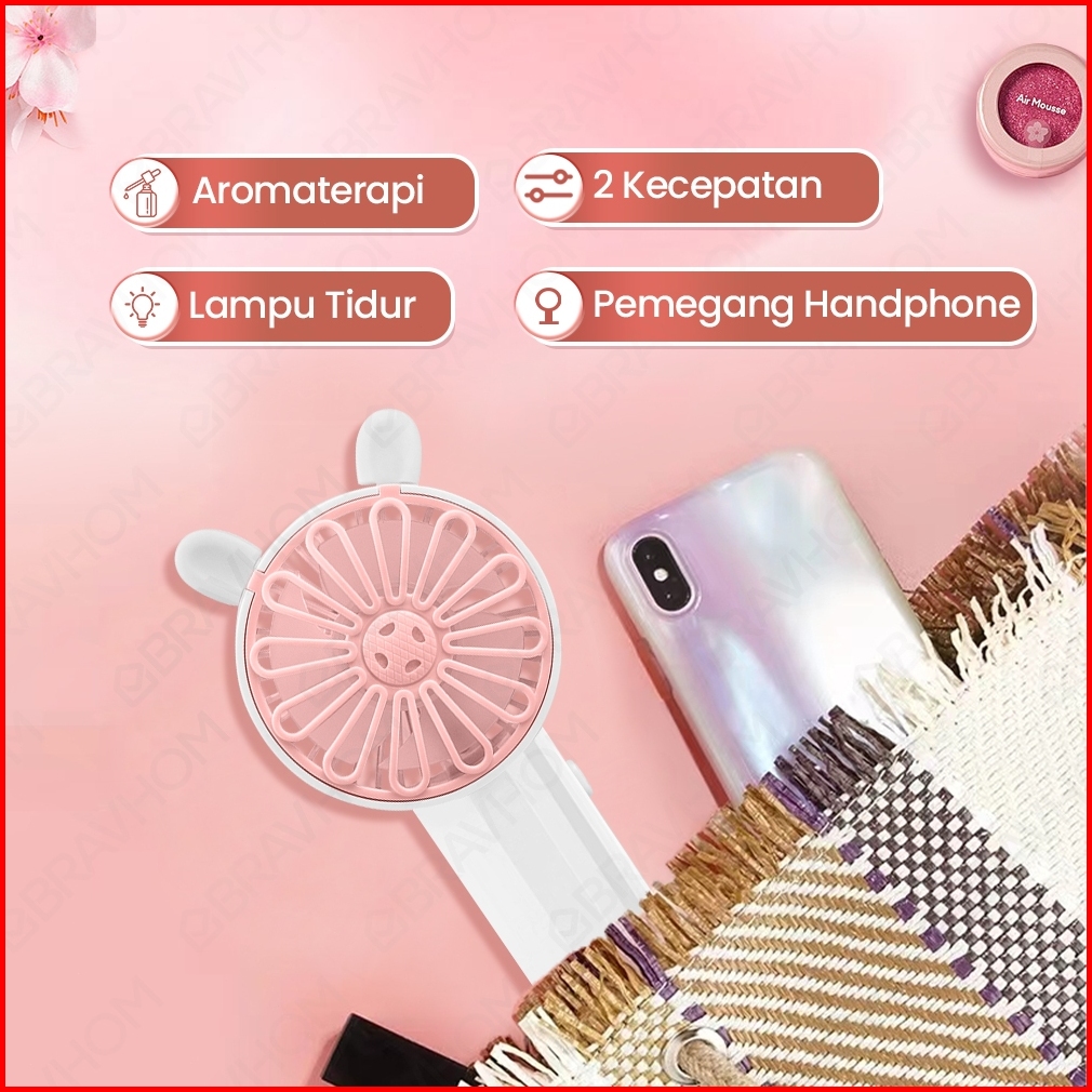Beli1 Gratis1 Bravhom Kipas Angin Mini Portable Aromaterapi Karakter Sebagai Dudukan Ponsel Bl-fn21
