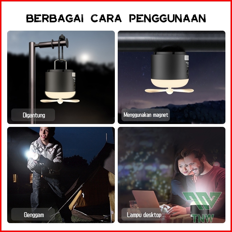 Tnw Ol4 Lampu Led Camping Lamp Rechargeable Lampu Tenda Camping Tent Light Emergency With Humidifier Fan For Outdoor Cam