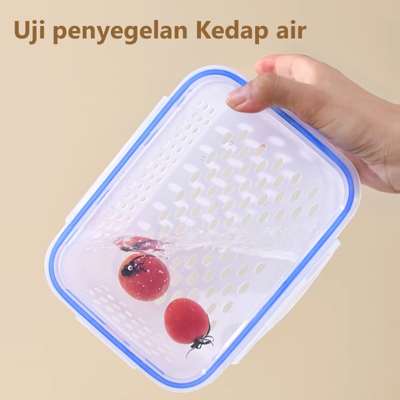Keranjang Sayuran Di Kulkas Serbaguna keranjang Sayur /Pengering Sayur/Keranjang Buah/Tempat Sayuran Kulkas 1 Set 3PCS Dengan Saringan/Food Container