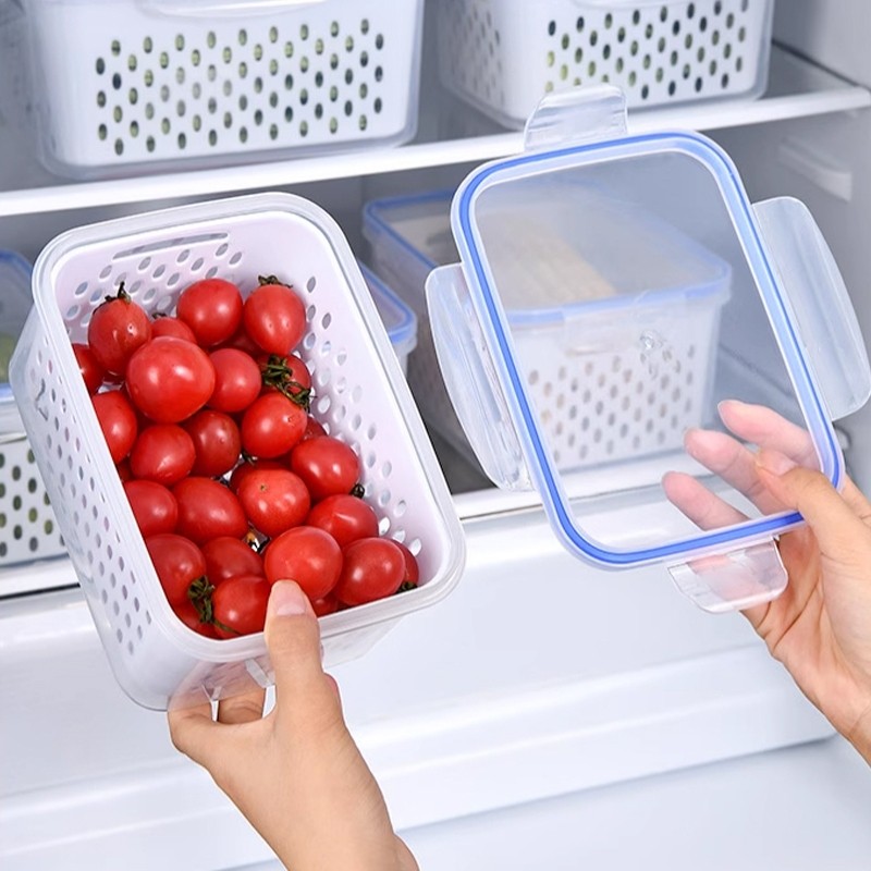 [PAKET 2 SET 6 PCS 3 Ukuran] Umi Food Container Kotak Penyimpanan Makanan Buah dan Sayur Kulkas / Keranjang Saringan Pengering Sayur Container Kulkas /Tempat Sayuran Kulkas Multifungsi 3in1