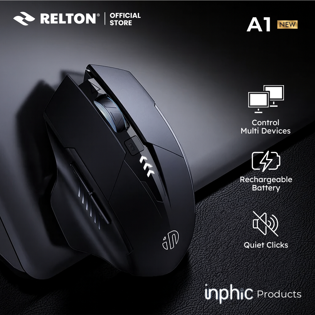 Mouse Gaming Wireless 3 Mode Bluetooth Silent Click Rechargeable Battery A1 INPHIC