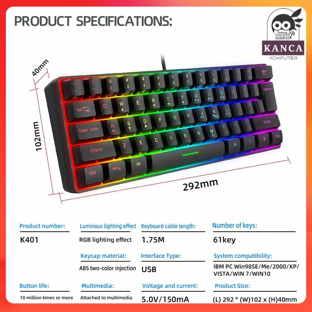 Y-FRUITFUL Keyboard Gaming RGB Backlit Mechanical Feel 61 Key Wired - K401