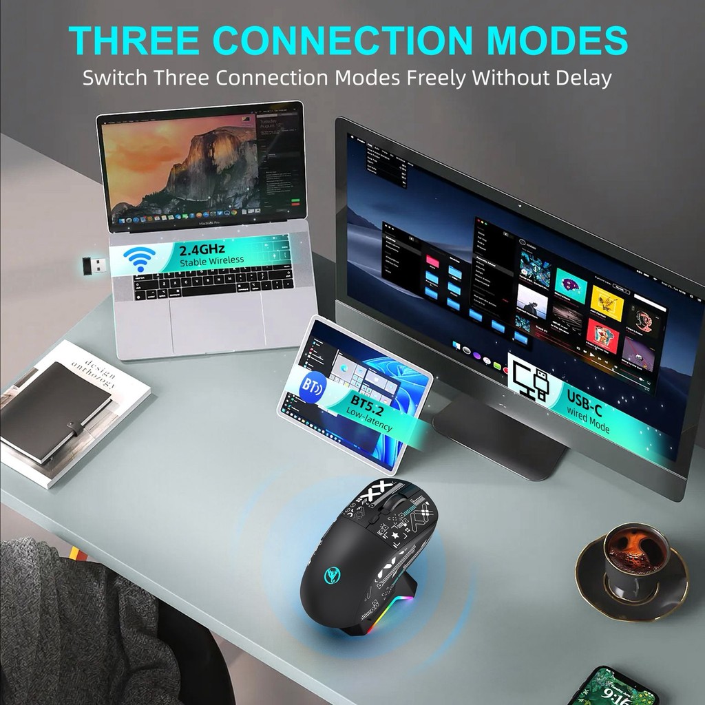 HXSJ T90 PRO 3-MODE CONNECTION GAMING MOUSE WITH CHARGING DOCK FOR PC LAPTOP DESKTOP