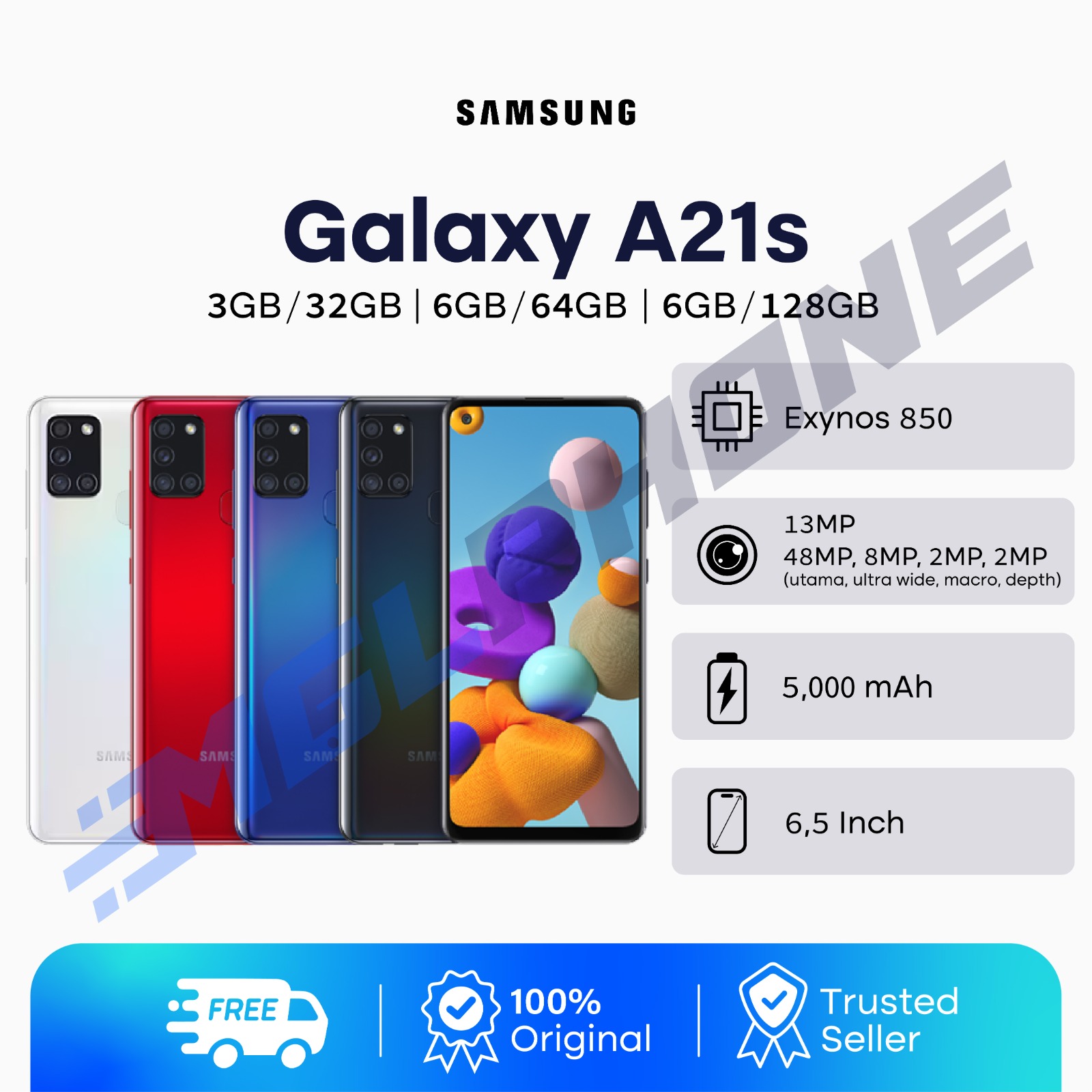 Samsung Galaxy A21s RAM 6GB ROM 128GB EXTRA BONUS dan BERGARANSI