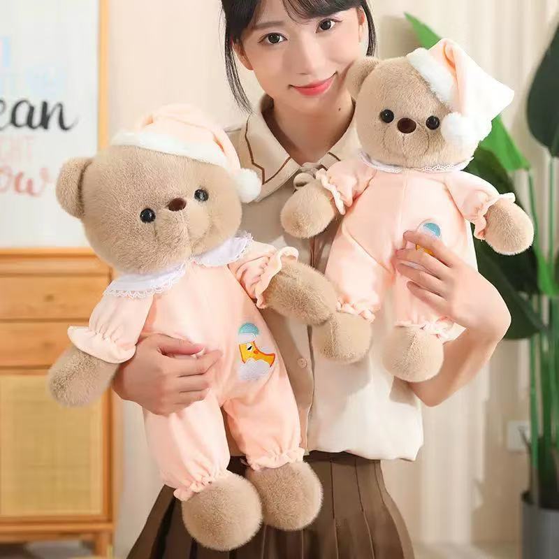 Boneka beruang lucu piyama & topi tidur - boneka tedy bear gemas lembut cocok untuk hadiah