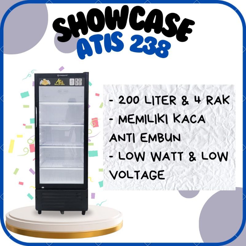 Showcase Frigigate Atis 238 Sudah Plus Kunci- 4 Rak New