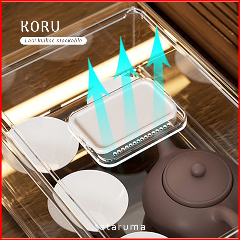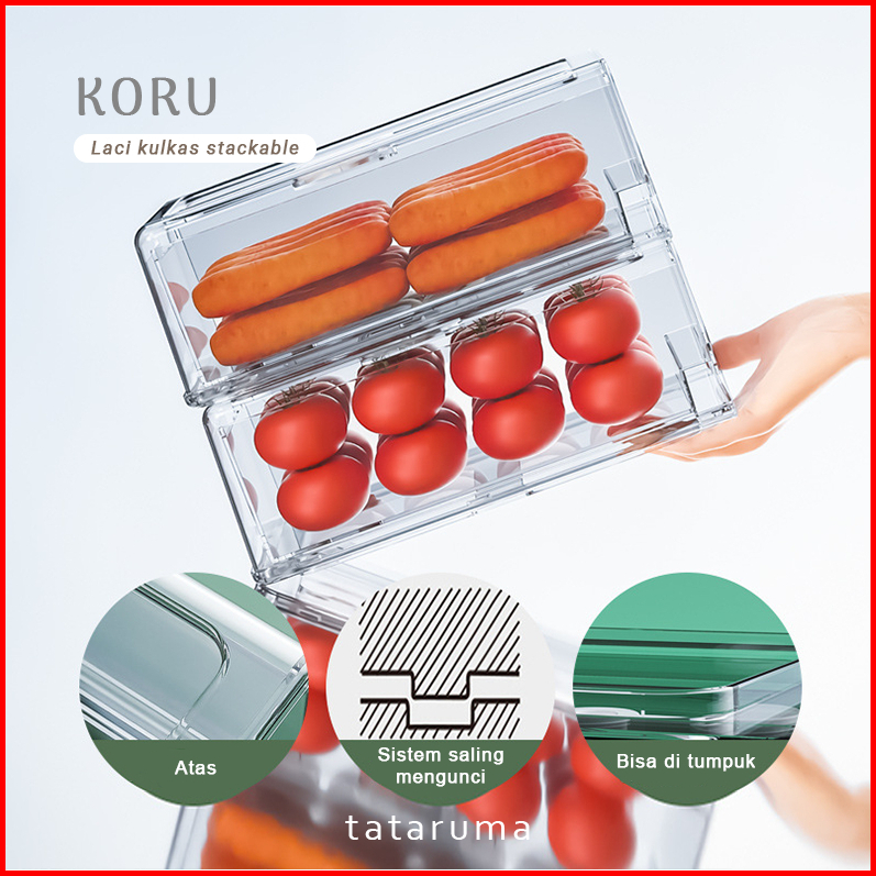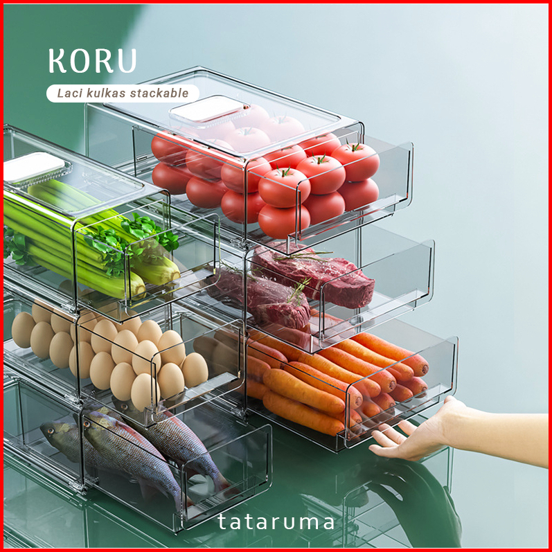Tataruma Koru - Kotak Kontainer Tempat Penyimpanan Toples Laci Drawer Makanan Sayur Buah Daging Bawang Cabai Kulkas Frid