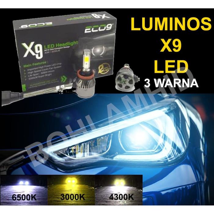 LED MOBIL LUMINOS ECO9 X9 H11 H16 30W 3 WARNA BOHLAM HEADLAMP FOGLAMP