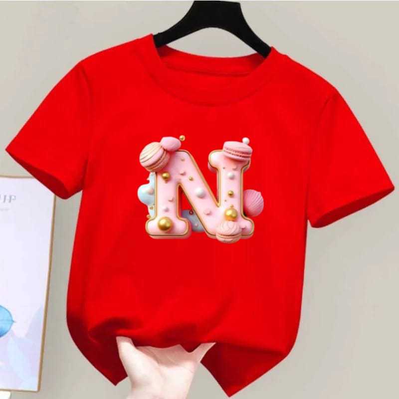 Baju Kaos Baju Atasan Anak Motif HURUF N LOLIPOP Pakaian Kaos Anak Unisex Usia 1-10 Tahun