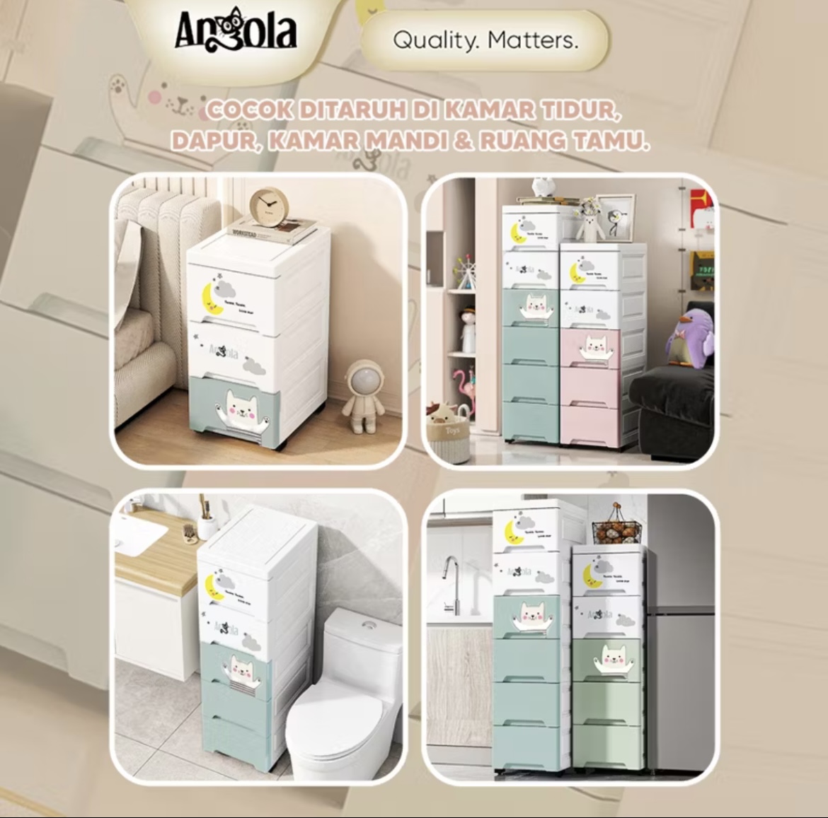 ANGOLA Lemari Plastik Tingkat G01-G04 Laci Susun/Cabinet Plastik Rak Susun Penyimpanan Serbaguna