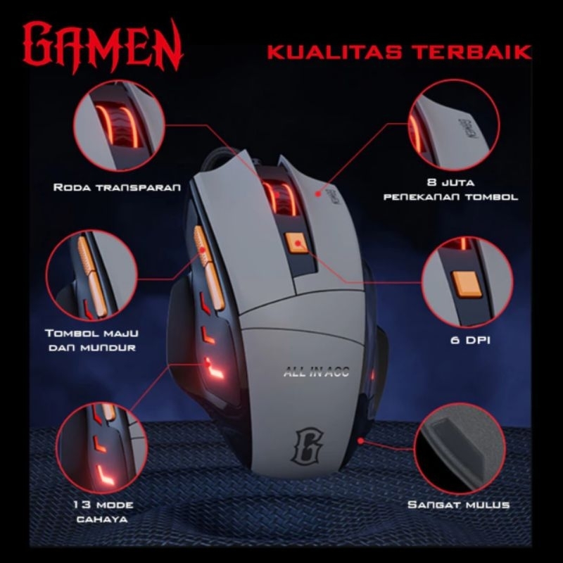 mouse gaming RGB light GAMEN GM100 / GM300 / GM 300w / GM310 2400 DPI original garansi resmi 1tahun