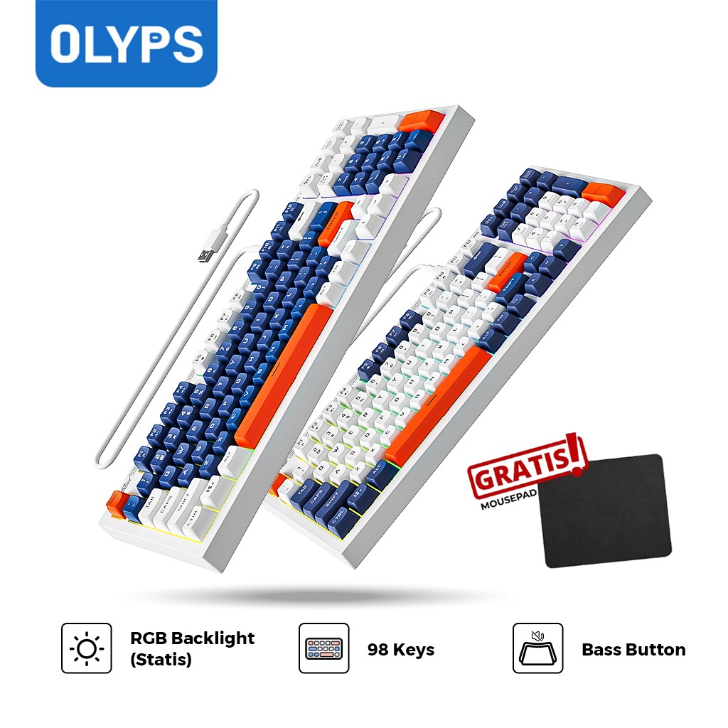 OLYPS Keyboard Gaming RGB Backlight Mechanical Feeling Kabel USB 98 Keys Ergonomic Untuk PC/Laptop