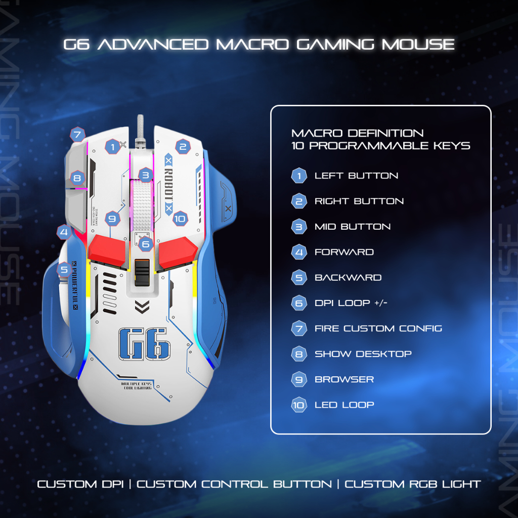Gaming Mouse Kabel Macro G6 Programming Mouse Gaming RGB Light 12800 DPI Responsive Button