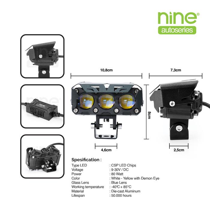 LUXIMOS LAMPU TEMBAK 80W SQL 3 MATA SUPER TERANG WHITE YELLOW TEMBUS HUJAN KABUT WATERPROOF SHOOTING LIGHT LASER UNIVERSAL SEMUA KENDARAAN MOTOR MOBIL Q9 PRO - NINE AUTOSERIES - PURPLE (UNGU)