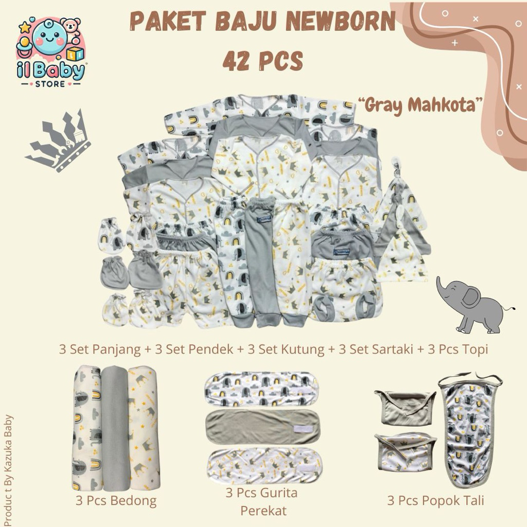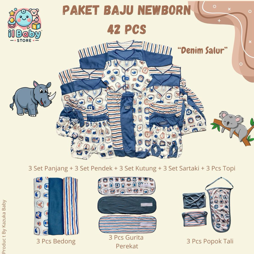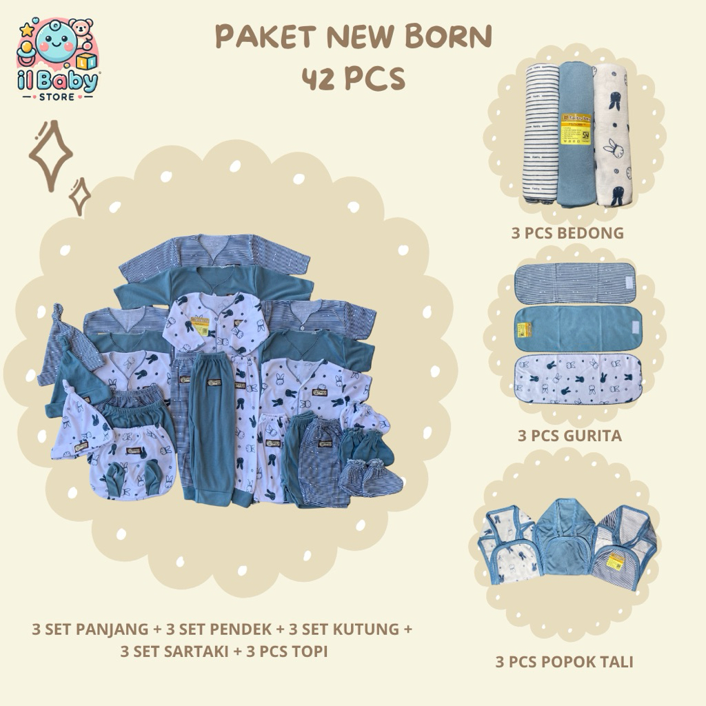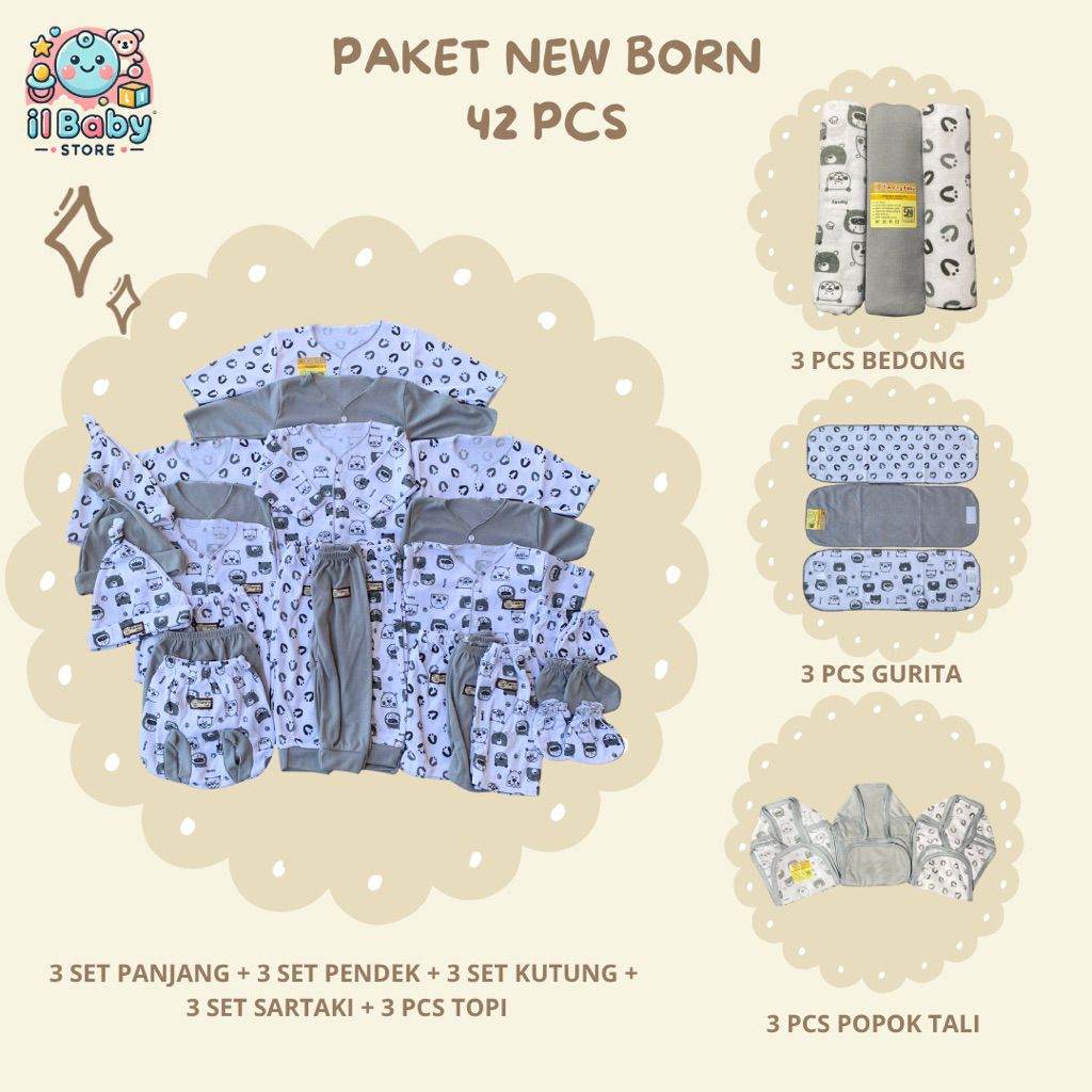 42 Pcs Paket Lahiran Hemat SNI All Motif / Baju & Celana Bayi Topi Bedong Sartaki Popok Kain Perekat 0-3 SNI / Il baby