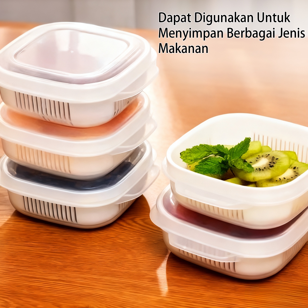 MINILABA Kotak Penyimpanan Kulkas Food Kontainer Dengan Saringan Kotak Penyimpanan Makanan Serbaguna Multifungsi Buah dan Sayuran