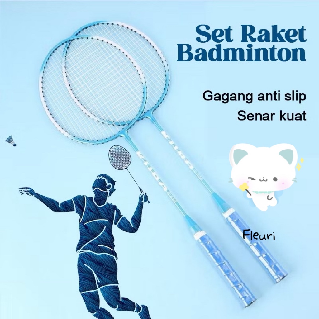 FLEURI | RAKET BADMINTON BULUTANGKIS isi 2pcs Set Raket Biru Pink Bonus Bag Gagang Anti Slip DIJAMIN BAGUS