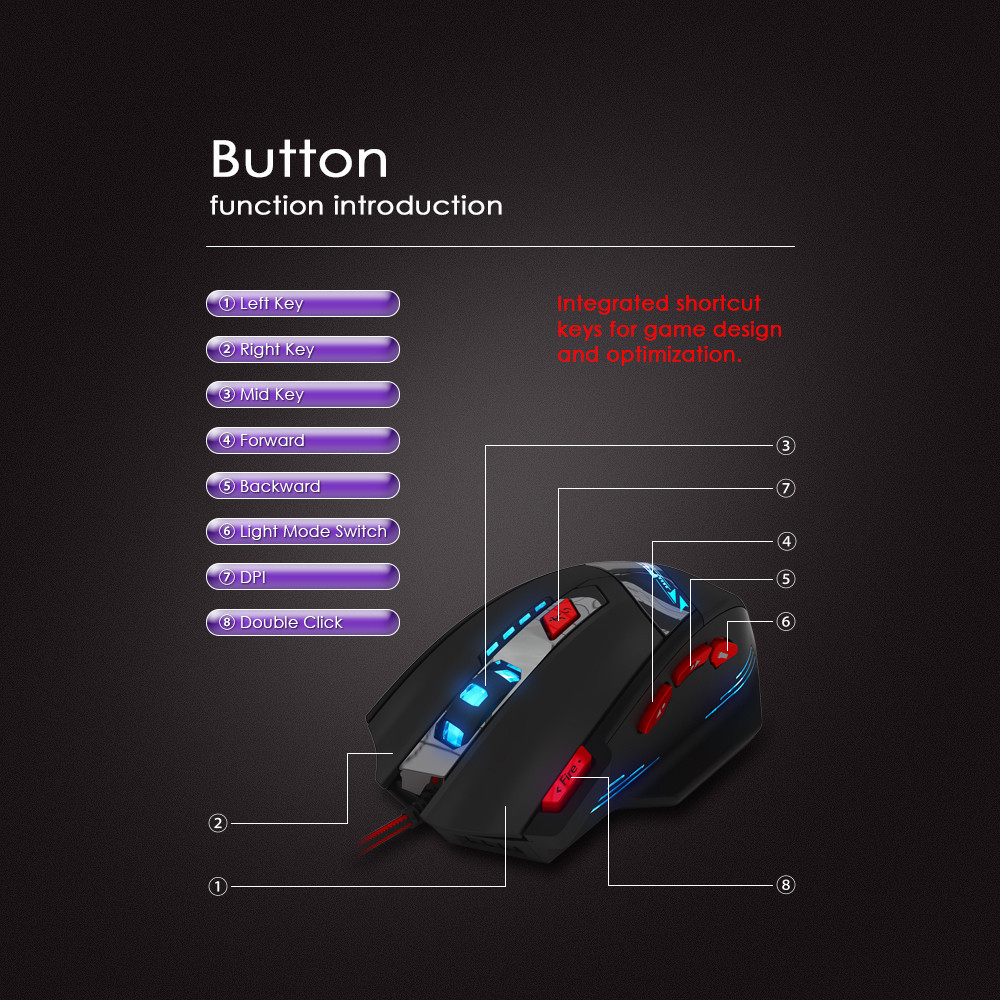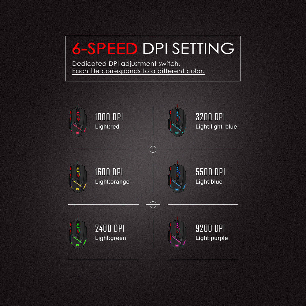 Zelotes T90 Professional 9200 DPI 8 Button High Precision USB Wired Gaming Mouse