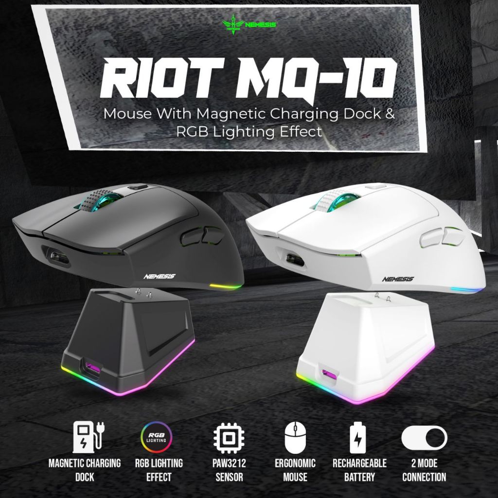 Mouse NYK Nemesis MQ-10 MQ10 RIOT Wireless Bluetooth with Dock RGB | Mouse Gaming