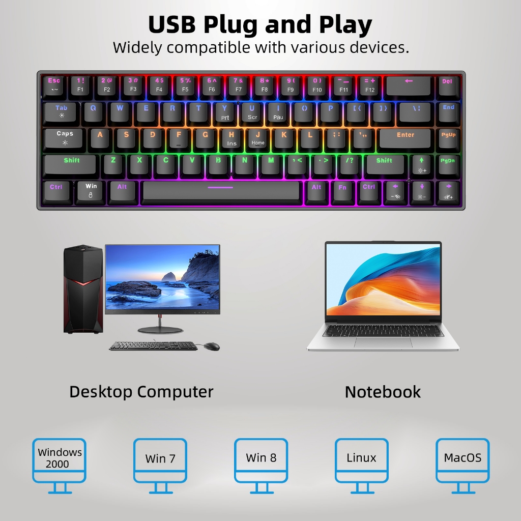 Goojodoq 68Keys Wired Mechanical Keyboard Gaming Keyboard PBT Keycaps Hot Swappable RGB Light for PC Laptop