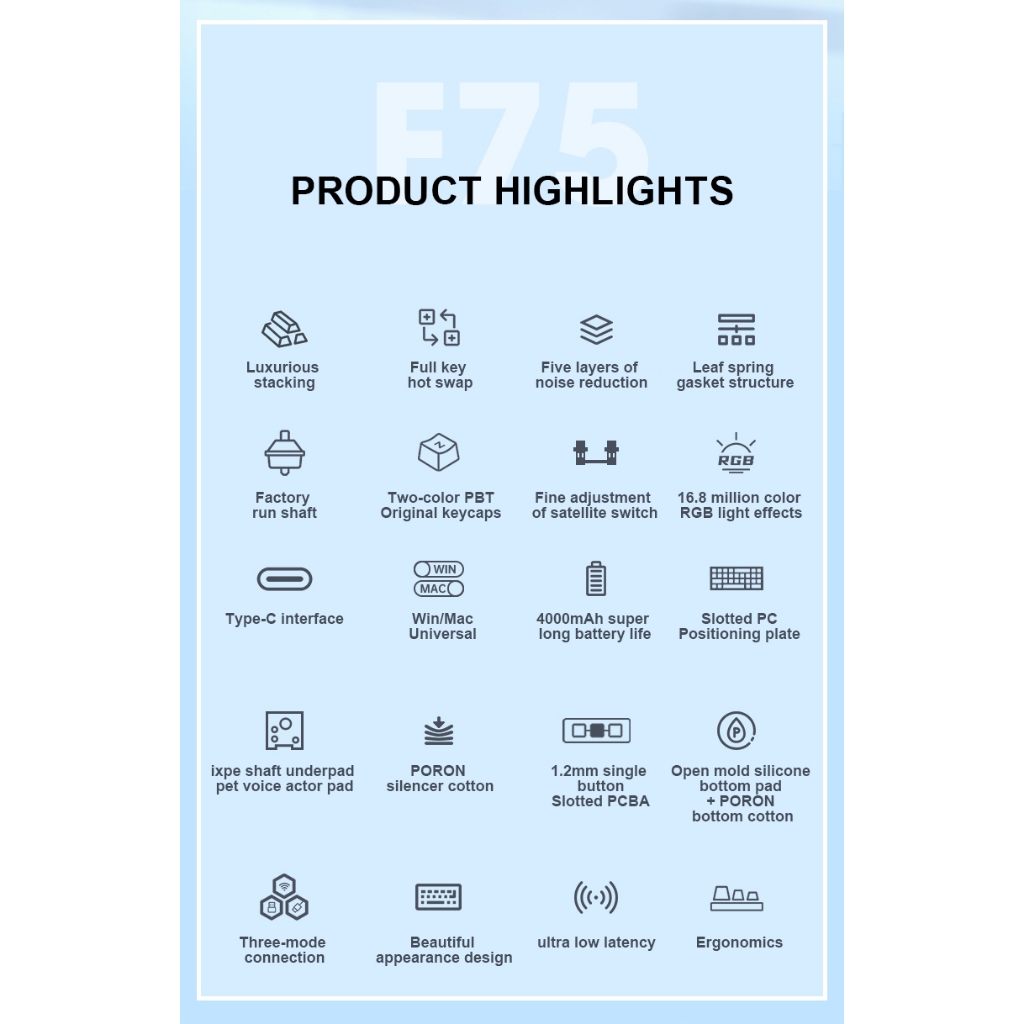 AULA Keyboard Gaming Mechanical Wireless Linear Switch Gasket F75 RGB Original - Garansi 1 Tahun