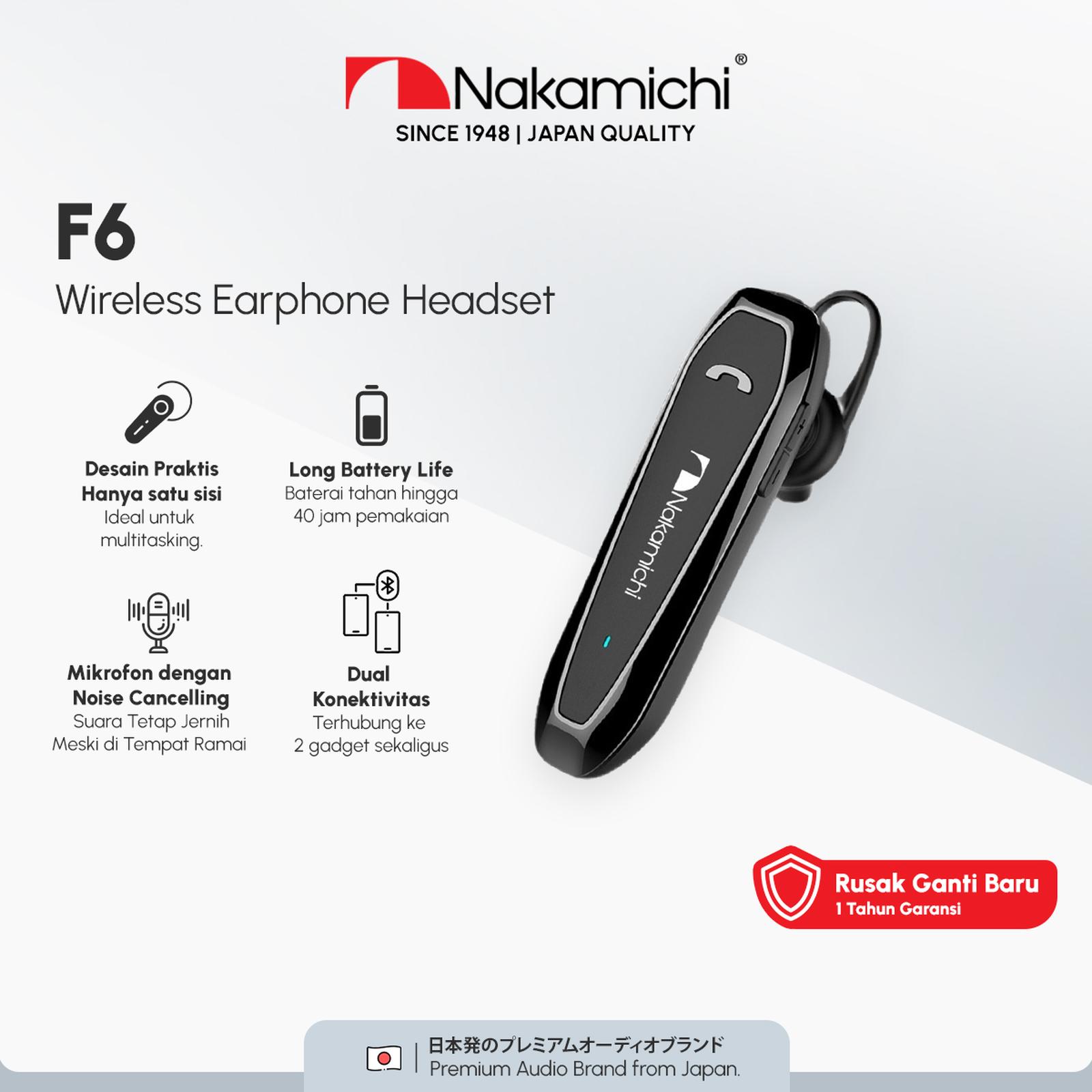 Nakamichi F6 Mono Headset Bluetooth Noise Cancelling Wireless Earphone Mic HD Black