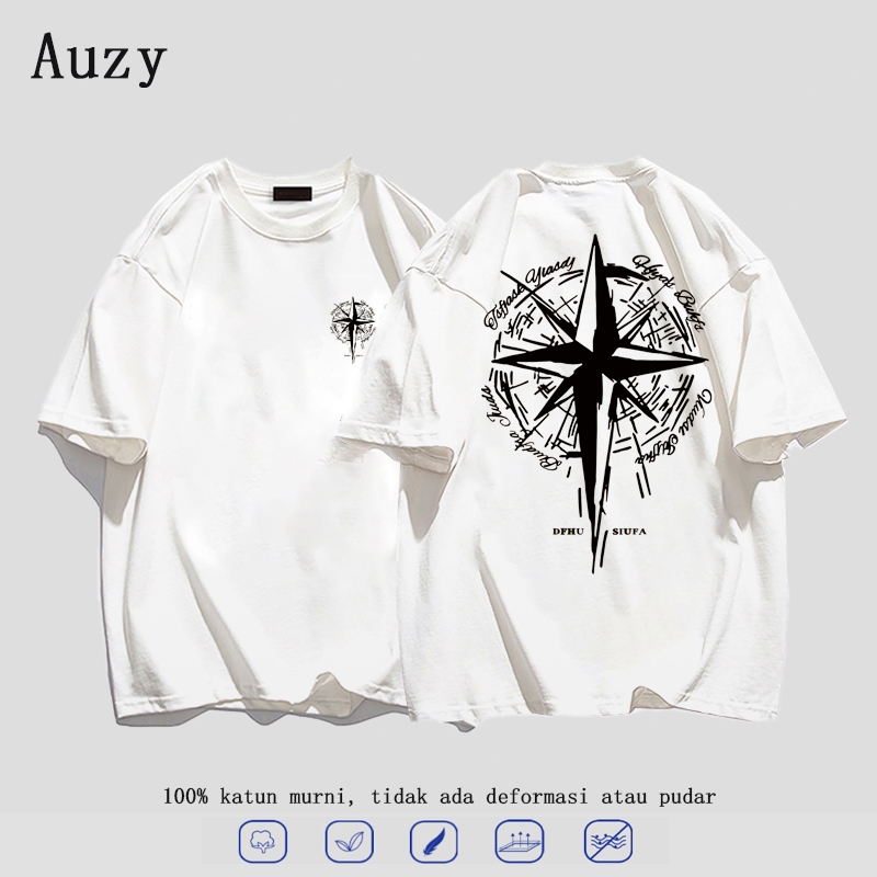 AUZY T-shirt Kapas gaya Amerika menyeberang t shirt kaos pria distro original 100 PERSEN kaos putih baju oversize pria