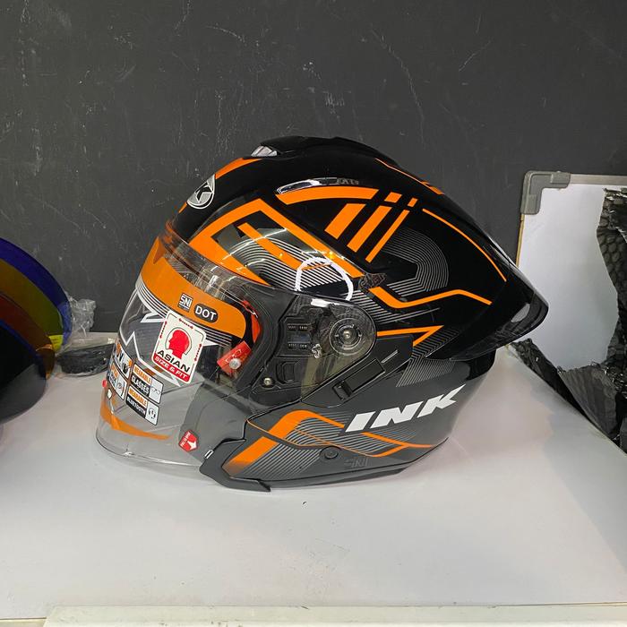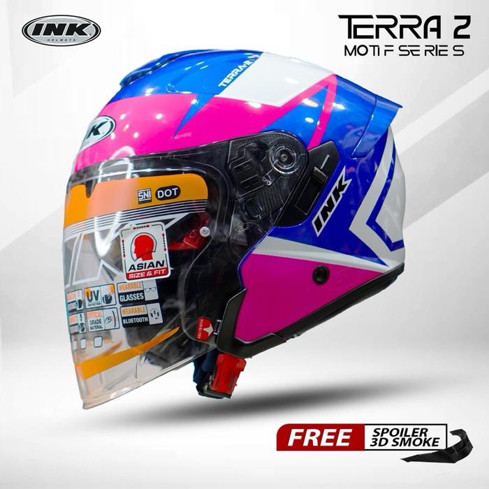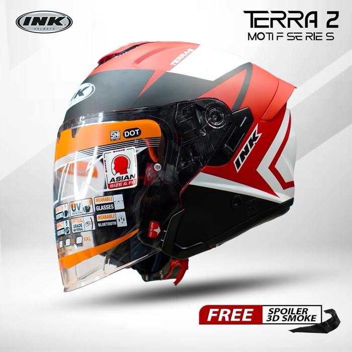 INK TERRA2 MOTIF DOUBLE VISOR FREE SPOILER 3D - Helm ink terra2 Motif SNI Original - BLACK GREEN, M