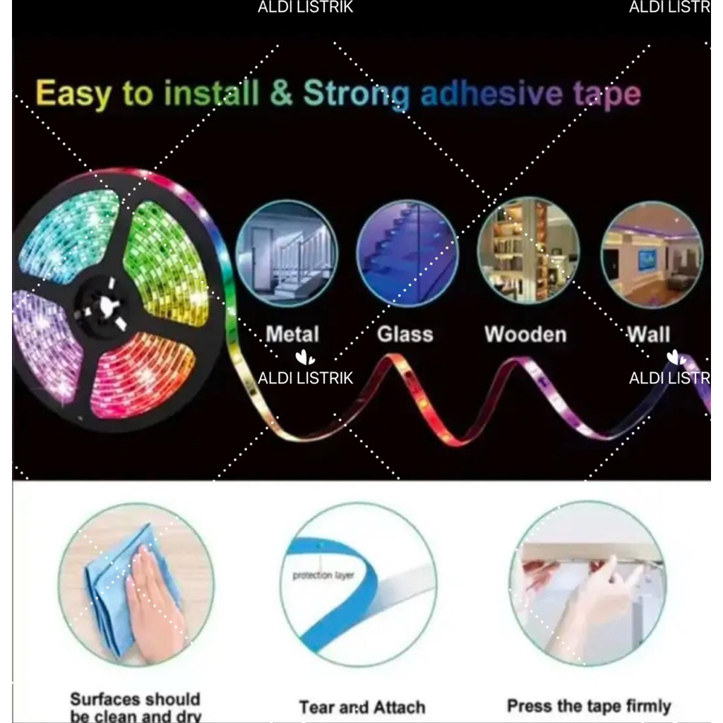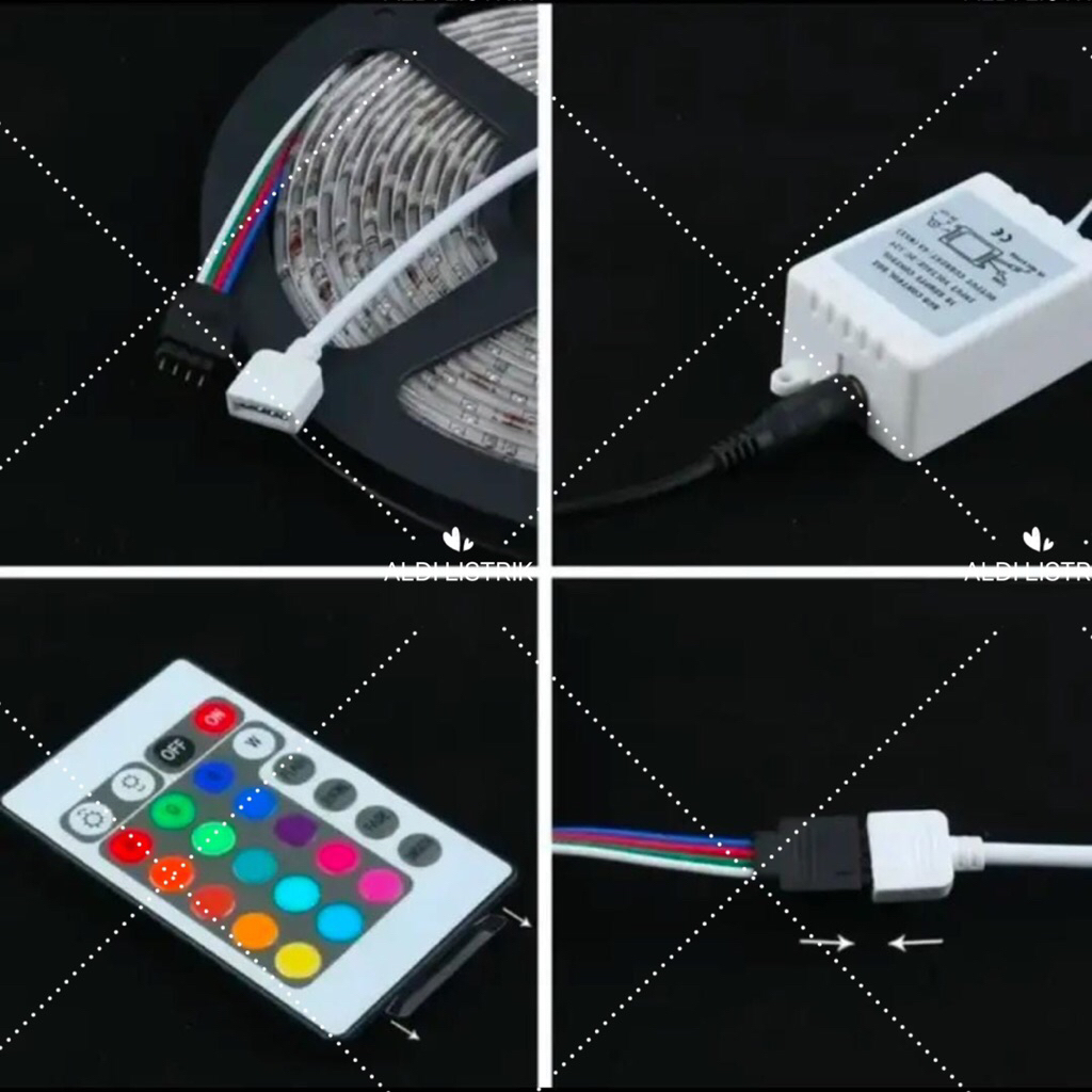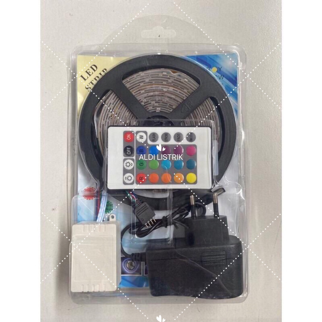 LAMPU LED STRIP 3528 2835 RGB WATERPROOF WARNA WARNI IP44 5M AC 220V + ADAPTOR + REMOTE 3528