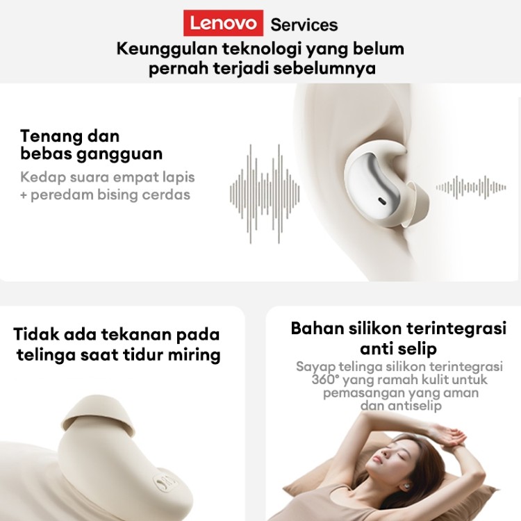 Earphone Bluetooth Lenovo Services LE203 TWS 6.0 ANC Earbuds Mini Peredam Bising Headset Tidur Nirkabel Best Quality