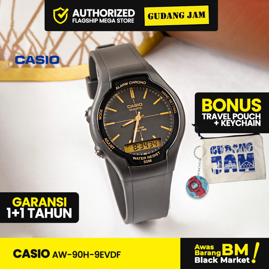 Jam Tangan Pria Casio Official Store Original Aw-90H-9Evdf Analog Digital