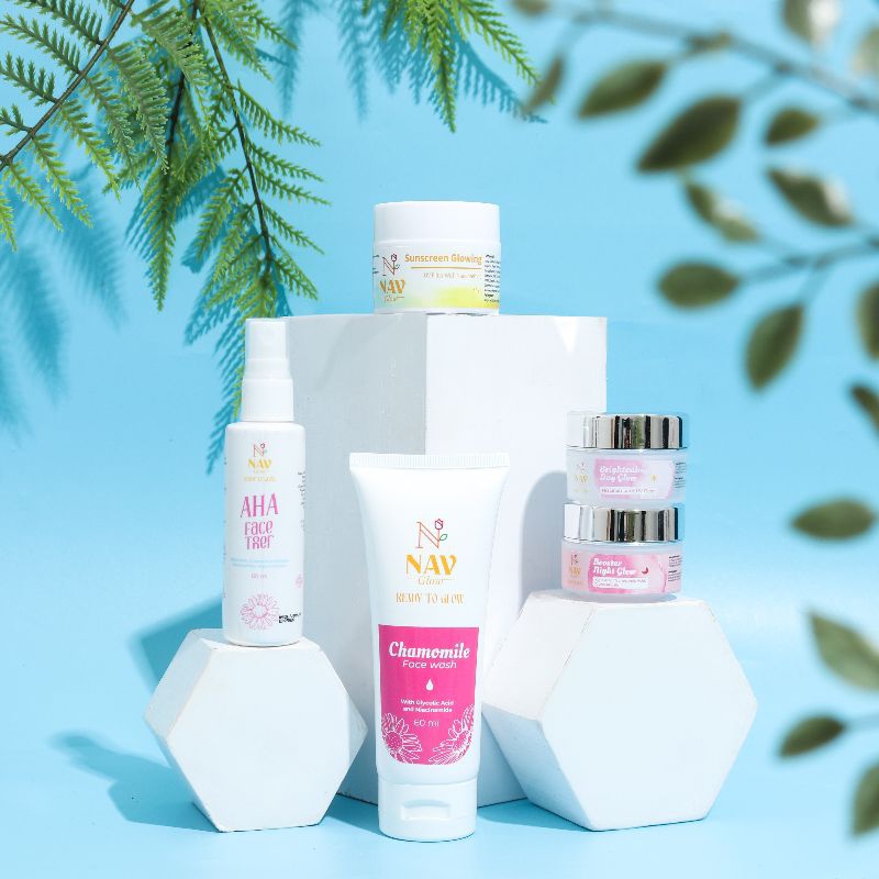 NAV GLOW PAKET BOOSTER ISI 5 + SUNSCREEN GLOWING [ FREE POUCH ] Paket Pencerah Untuk Penghilang Flek Dan Bekas Jerawat