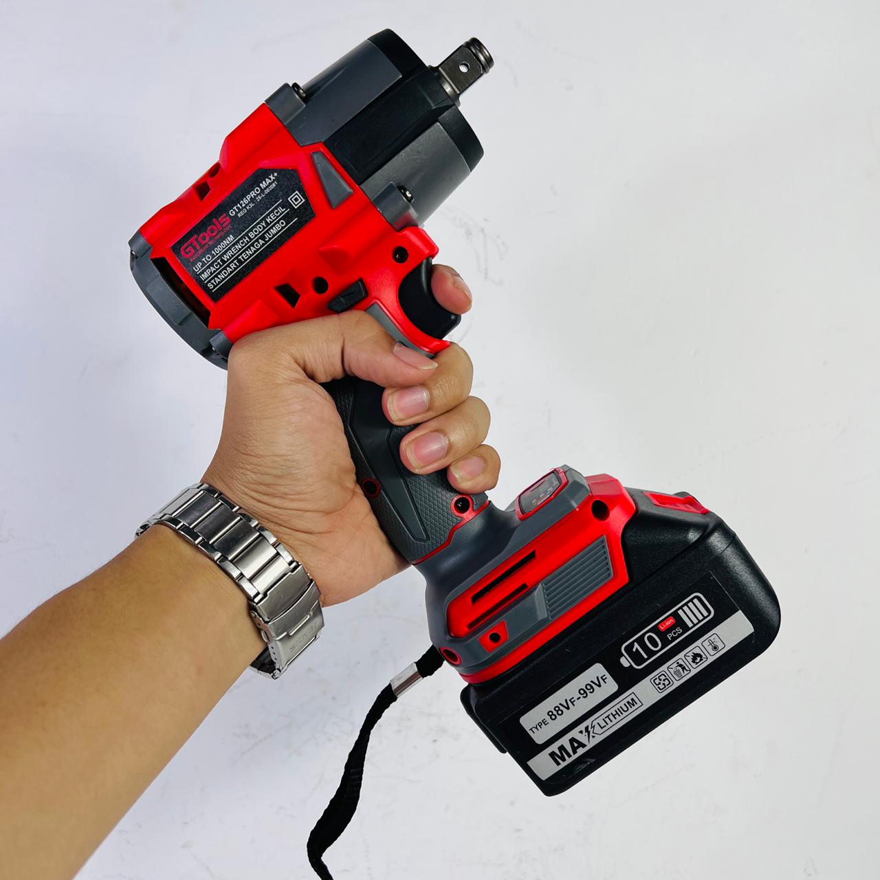 Gtools Bor Impact Wrench GT126 Promax 1000NM Body Kecil Tenaga Jumbo Fullset Koper 2 Baterai Upgrade CVT Edition