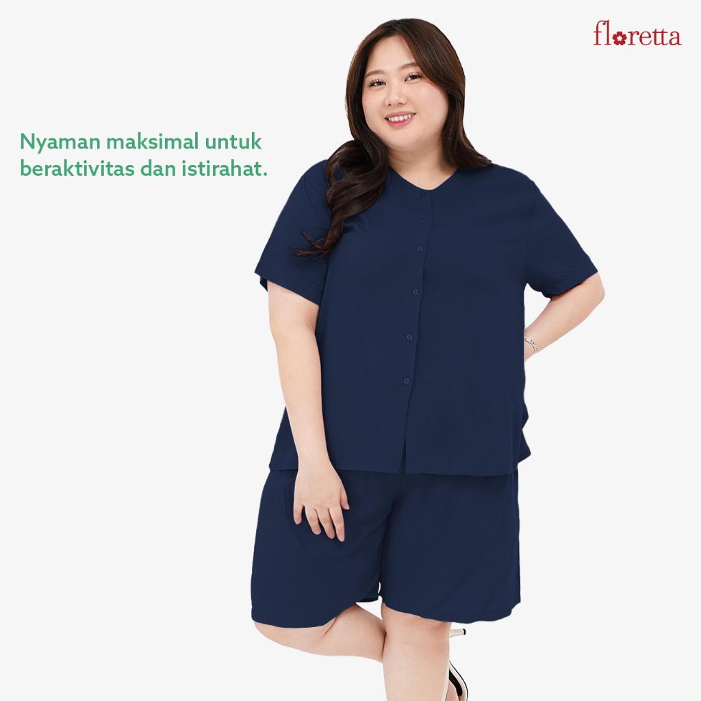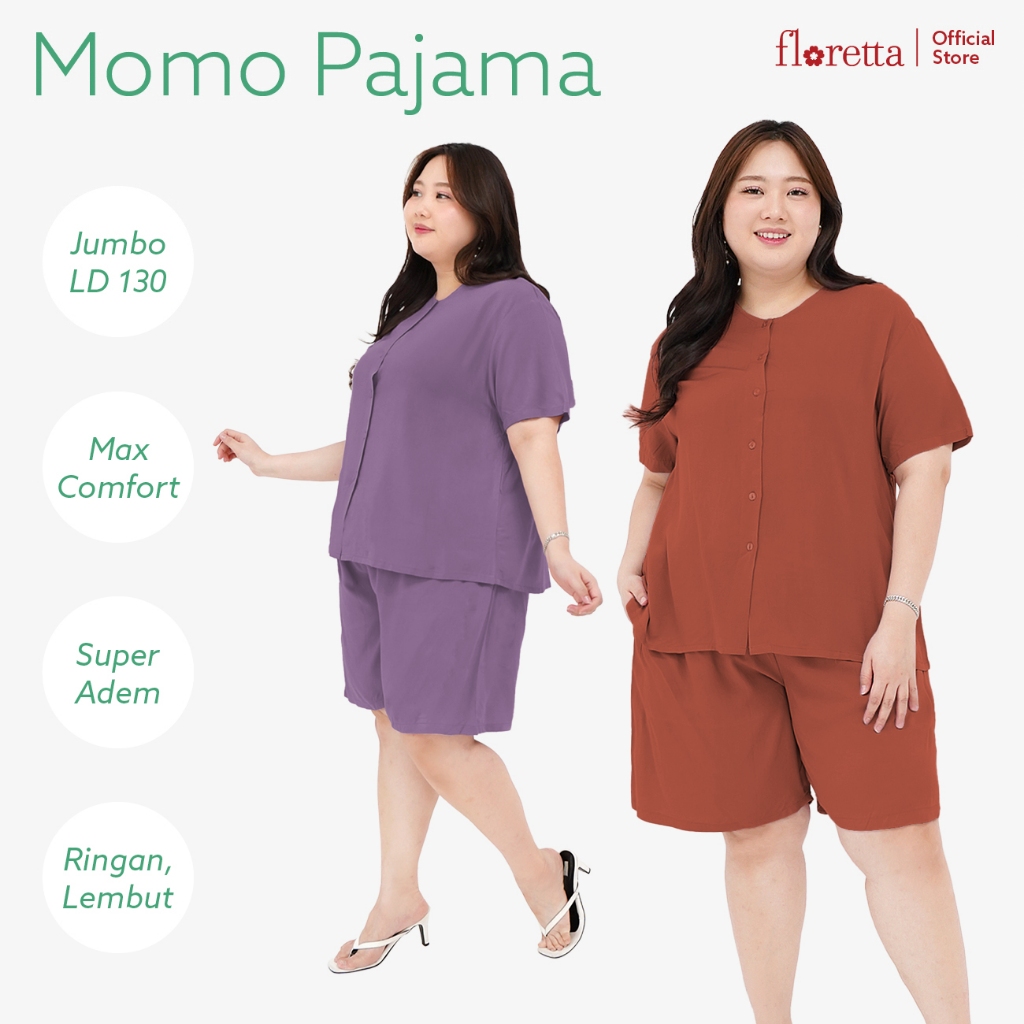 Baju Tidur Wanita Piyama One Set Celana Pendek Katun Rayon Jumbo XXL LD 130 Momo Floretta