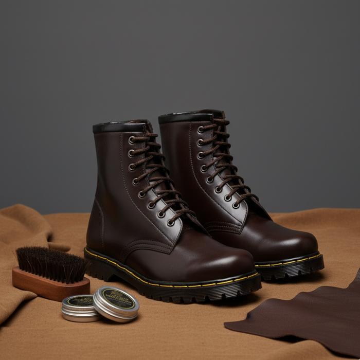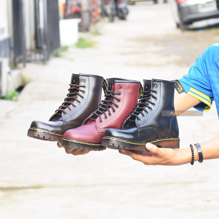 WETAN SEPATU BOOTS SHOES KERJA PRIA WANITA UNISEX HITAM COKLAT MAROON 8 H0LE BAHAN KULITUKURAN BESAR 36-45 - HITAM, 36 WANITA