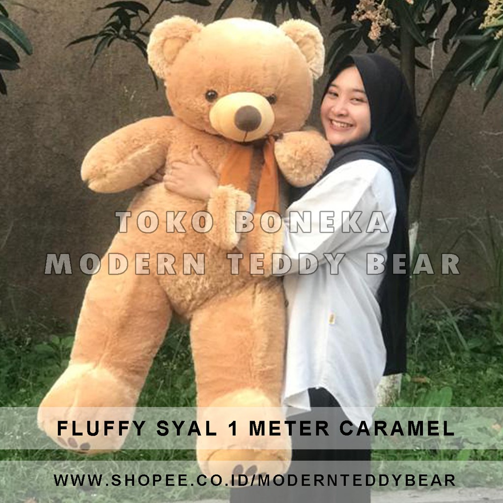 Boneka Beruang Teddy Bear Fluffy Syal JUMBO 1 Meter